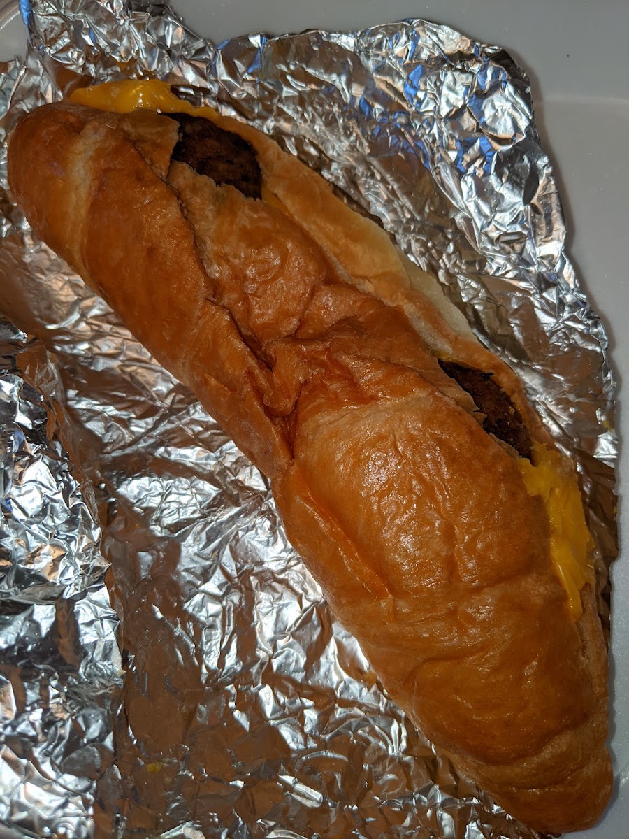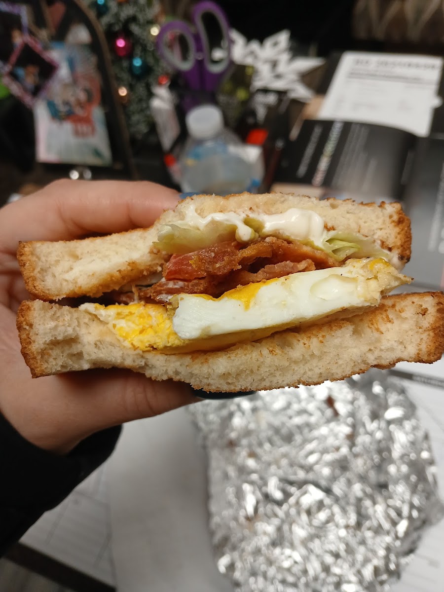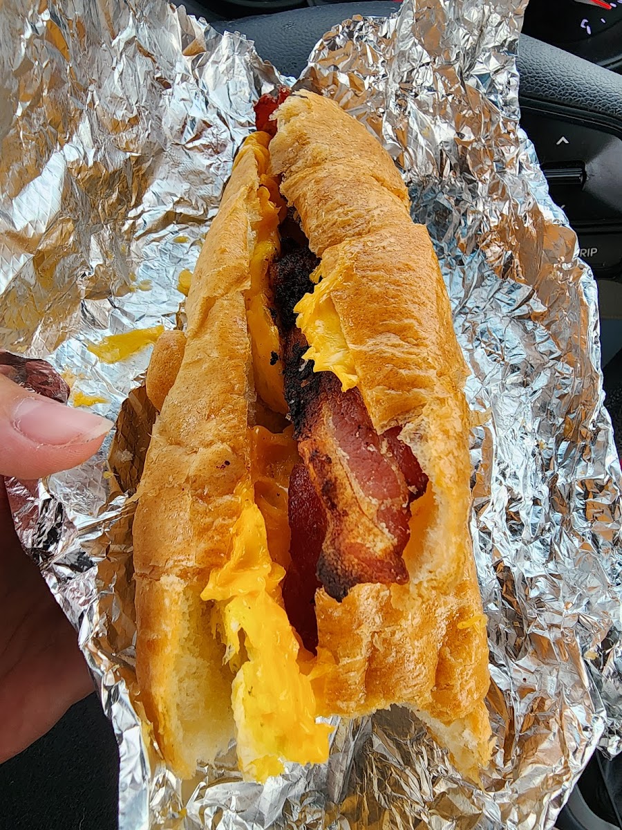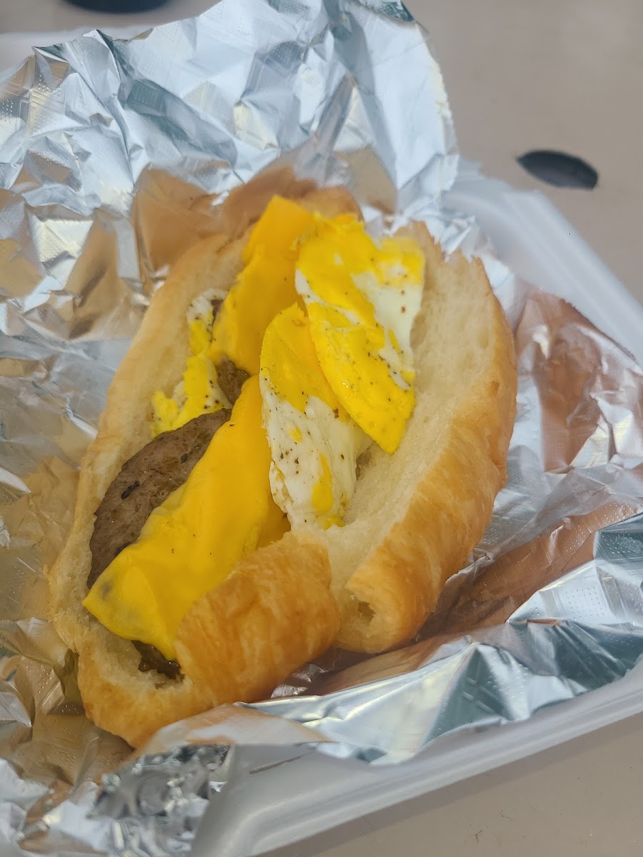 Cute little shop!! :) DELICIOUS food, seriously. Large croissants, I was expecting like a small normal sized croissant. Loved it!! I got the sausage egg and cheese and my girlfriend got the bacon egg and cheese. Also my green tea latte was incredibly good. They work really hard here! Check them out :)