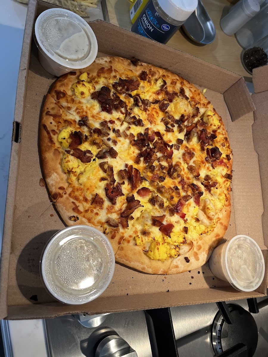 Ordered a breakfast pizza with gravy for carry out of this nice little spot and they have a lot more than coffee and pastries ect. They offer multiple breakfast and lunch options with a drive thru as well as having some limited inside seating. Very friendly staff and prices are within reason!