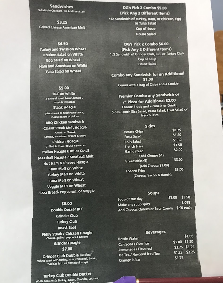 Choice of 1/2 sandwich of turkey or ham and includes a bag of chips and drink