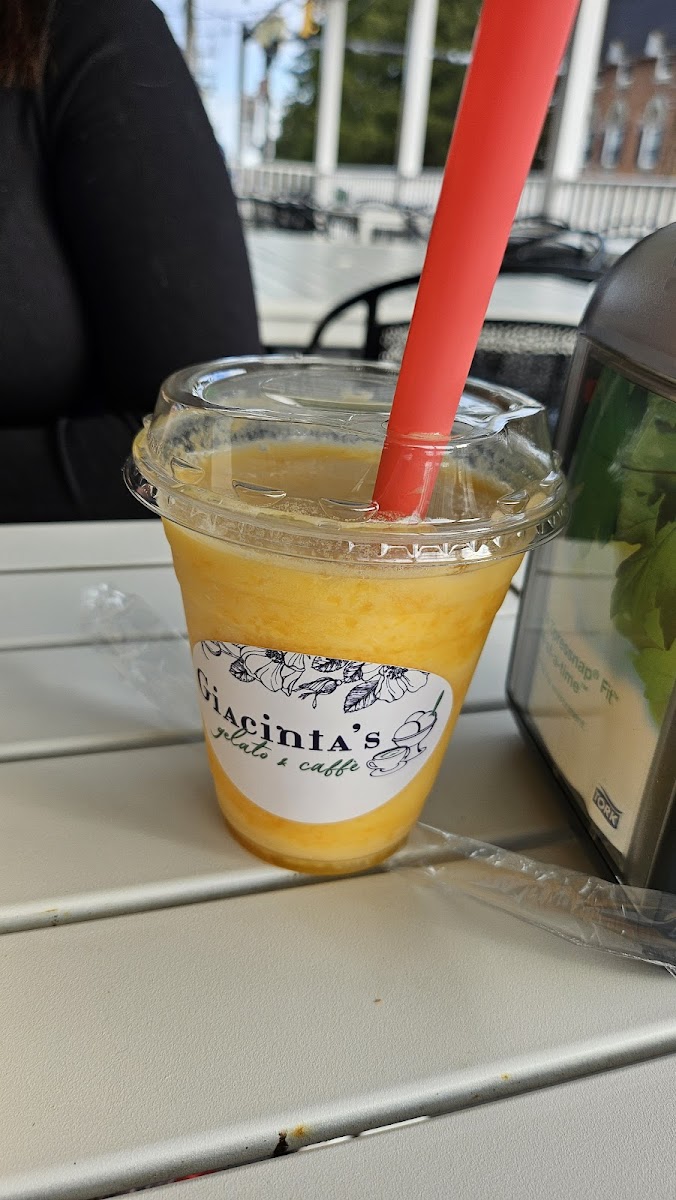What a wonderful local coffee shop to have in St. Clairsville, OH. I had time this morning to stop and so glad that I did. I had a delicious hot caramel macchiato and a very filling breakfast panini. The panini had egg, sauage, and cheese on an italian like white bread. My photos do not do it justice. The service was professional and the appropriate time to prepare all that I had ordered. It was such a nice morning that I sat out on their spaceous desk while I enjoyed my breakfast. This is truly a gem and I recommend to everyone to make Giacinta's a destination place.