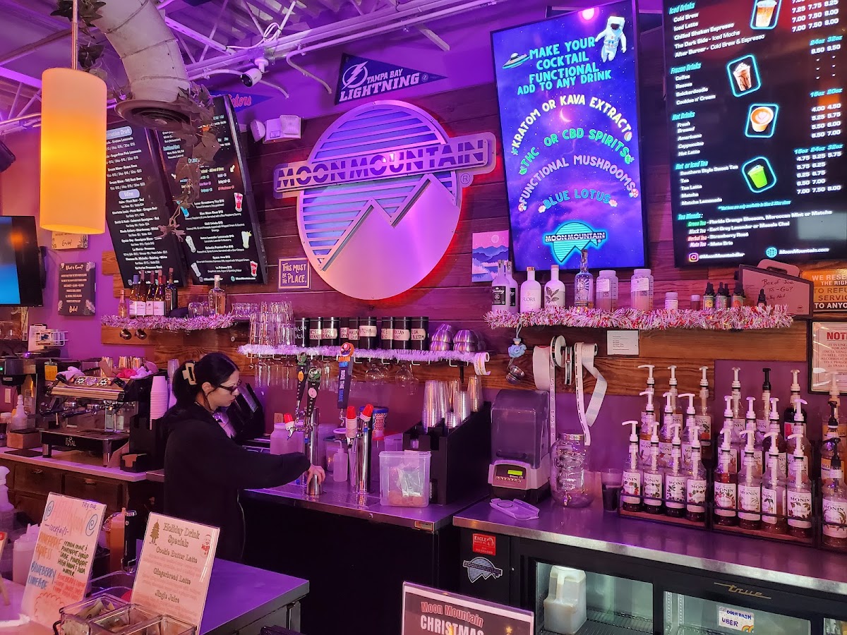 Moon Mountain is a coffee shop located at 210 S Kings Ave # J, Brandon, FL 33511, with 650 reviews highlighting its beverage and dessert offerings. The menu features items such as Iced Coffee, Cider, Cappuccino Latte Macchiato, Key Lime Pie Set Down Delight, and Matcha Latte. The shop sees the busiest periods on Monday from 4:30 PM to 7:30 PM and Tuesday from 3:30 PM to 6:30 PM, with waits of up to 15 minutes, while other days have no wait. Moon Mountain is known for its variety of specialty drinks and desserts, making it a popular coffee stop in Brandon, Florida.