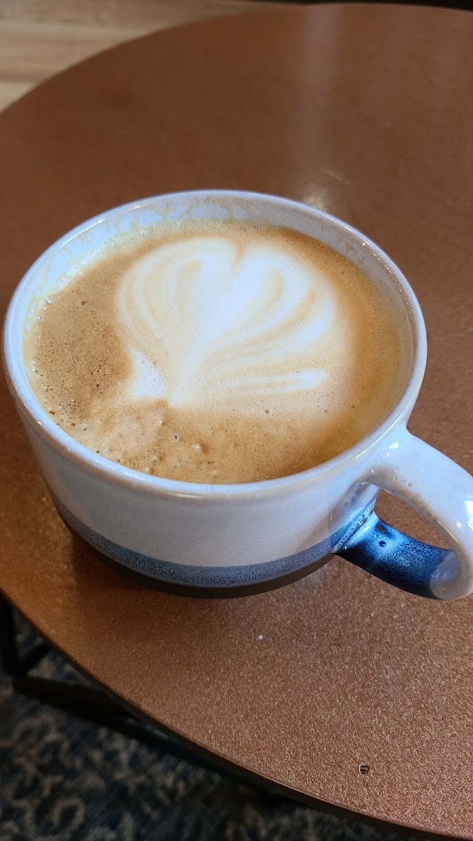 It's really an amazing place to chill-out either with your books/work or with friends for a chat. The decor and vibe immediately felt welcoming as soon as I entered. The coffee and sweet treats (tried Danish and chocolate chip cookies) were delicious. Chloe (I hope I spelled the name correctly) was wonderful, professional and served with a beautiful smile. The friend that I met for about an hour, greeted at least 5-6 people by name and that really showed what a lovely community this coffee shop has developed. Prices are reasonable. Overall, a wonderful experience. I will definitely go there again with my family.
