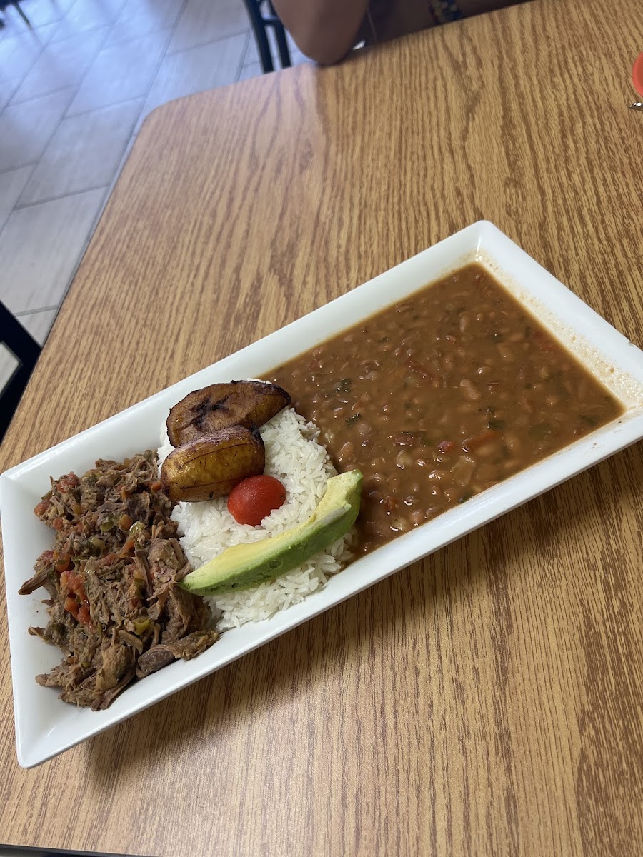 Amazing spot for Colombian food. The ropa vieja was so good with really flavorful meat and delicious sweet plantains! Their salad is also a must order because the dressing is incredible. Pictured is ropa vieja, their salad, and beef empanadas!