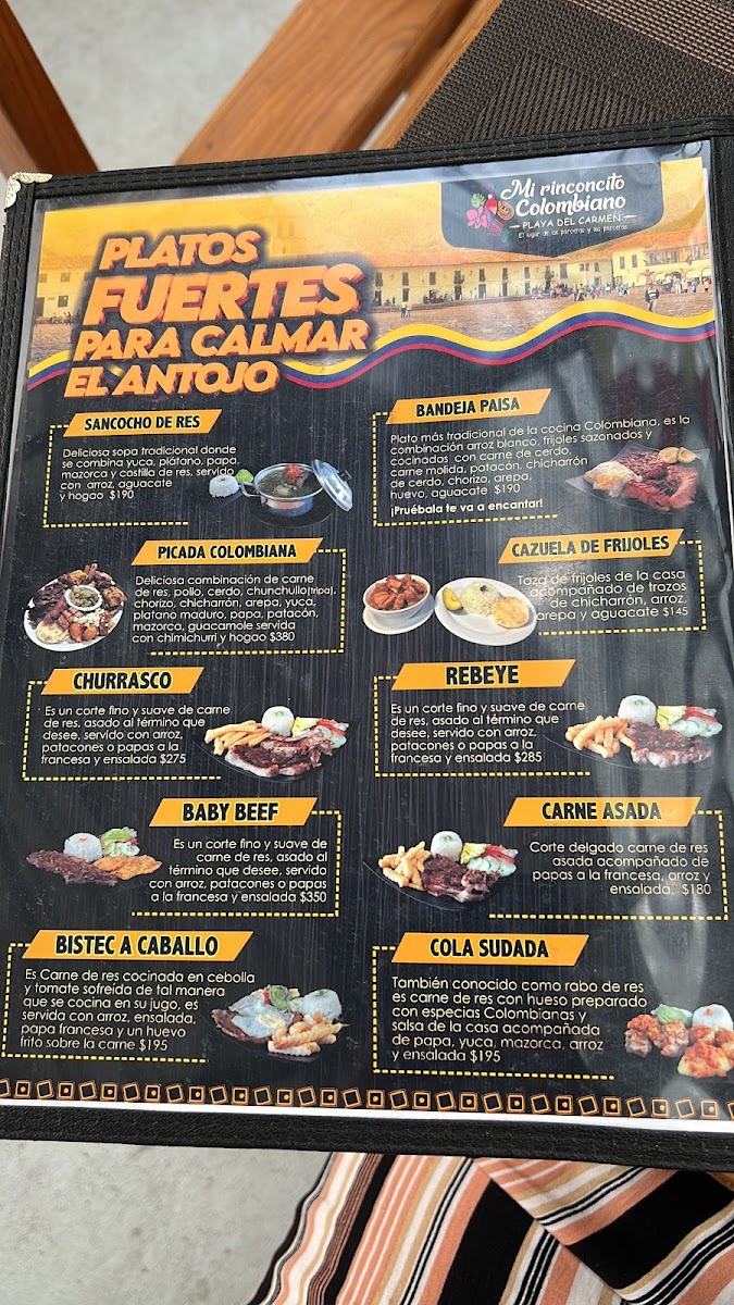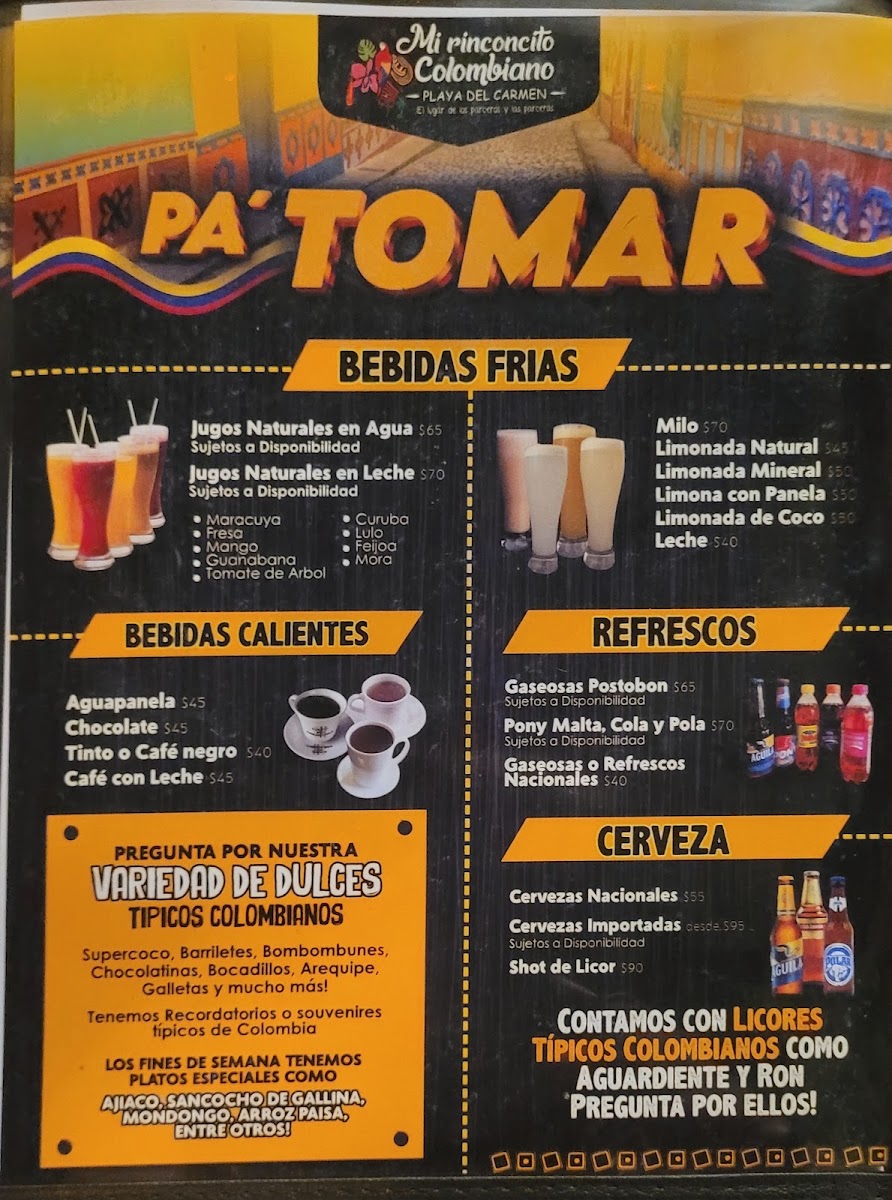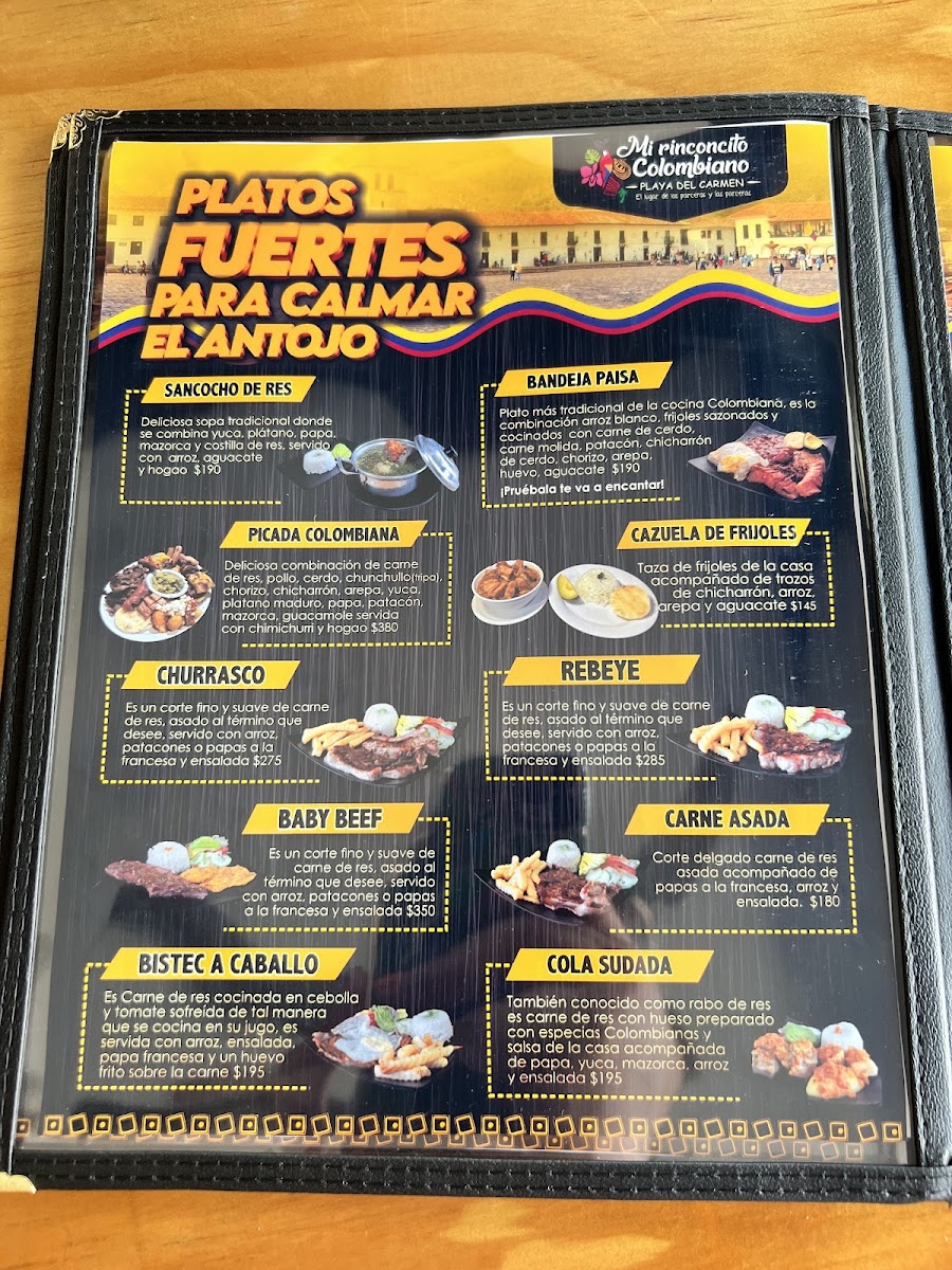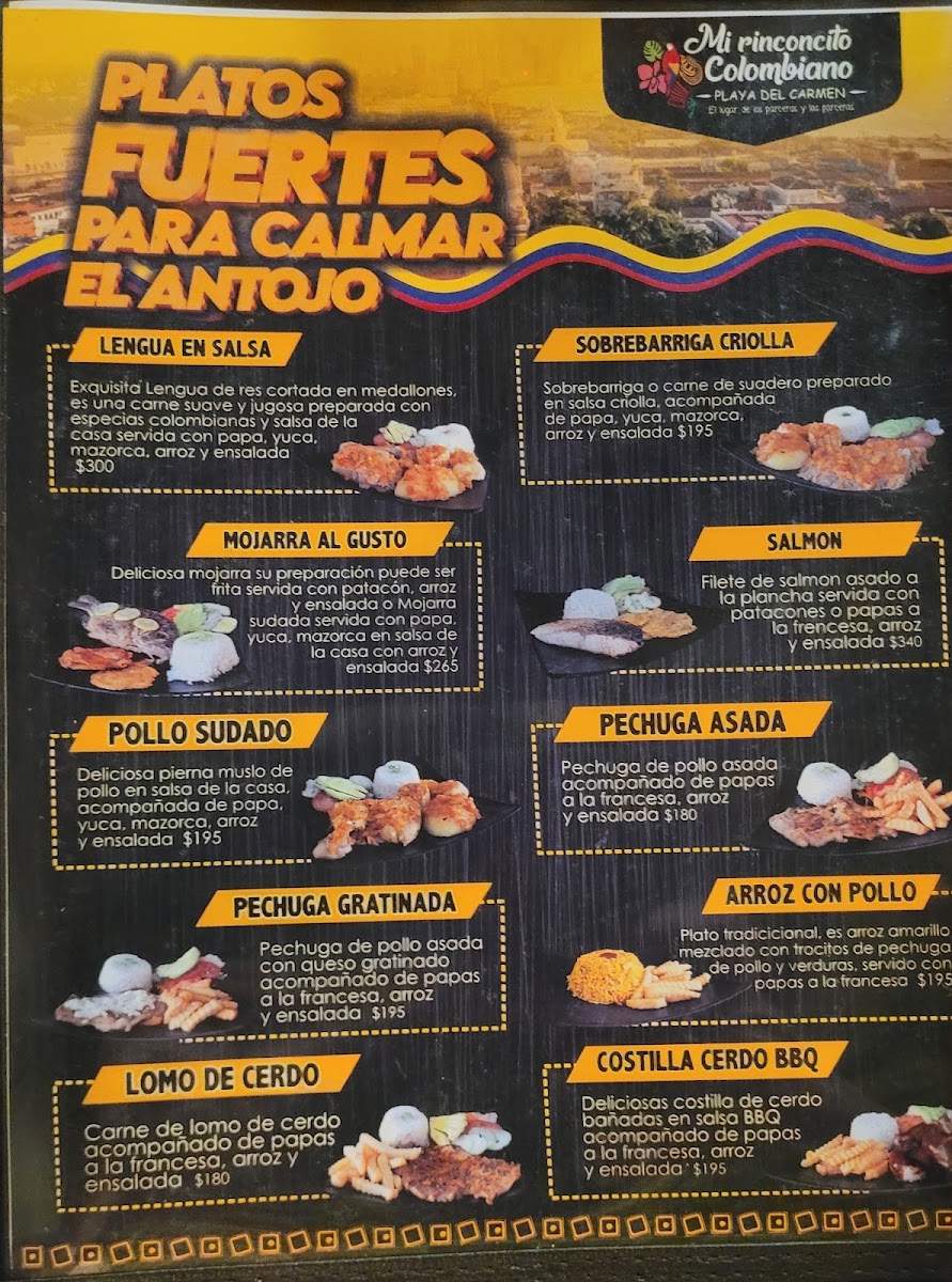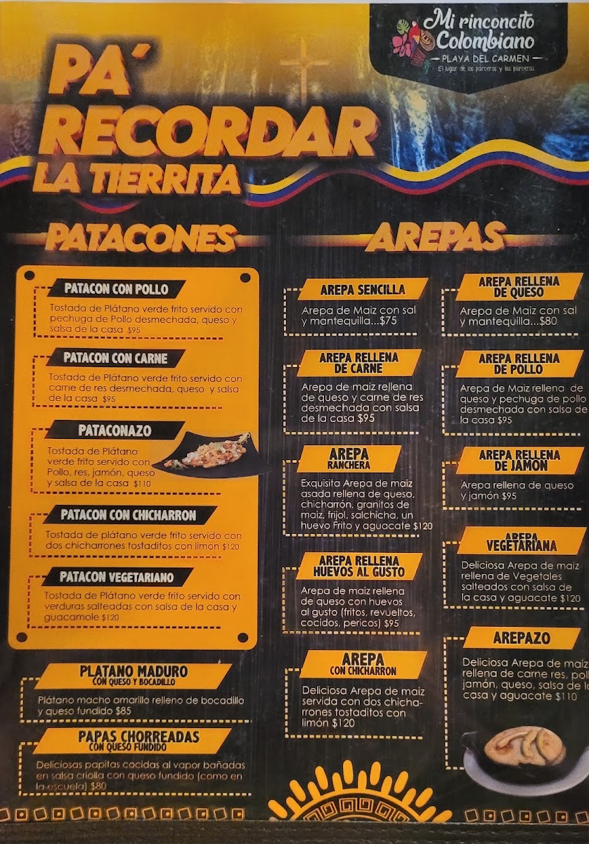 Mi Rinconcito Colombiano El Lugar De Los Parceros Menu