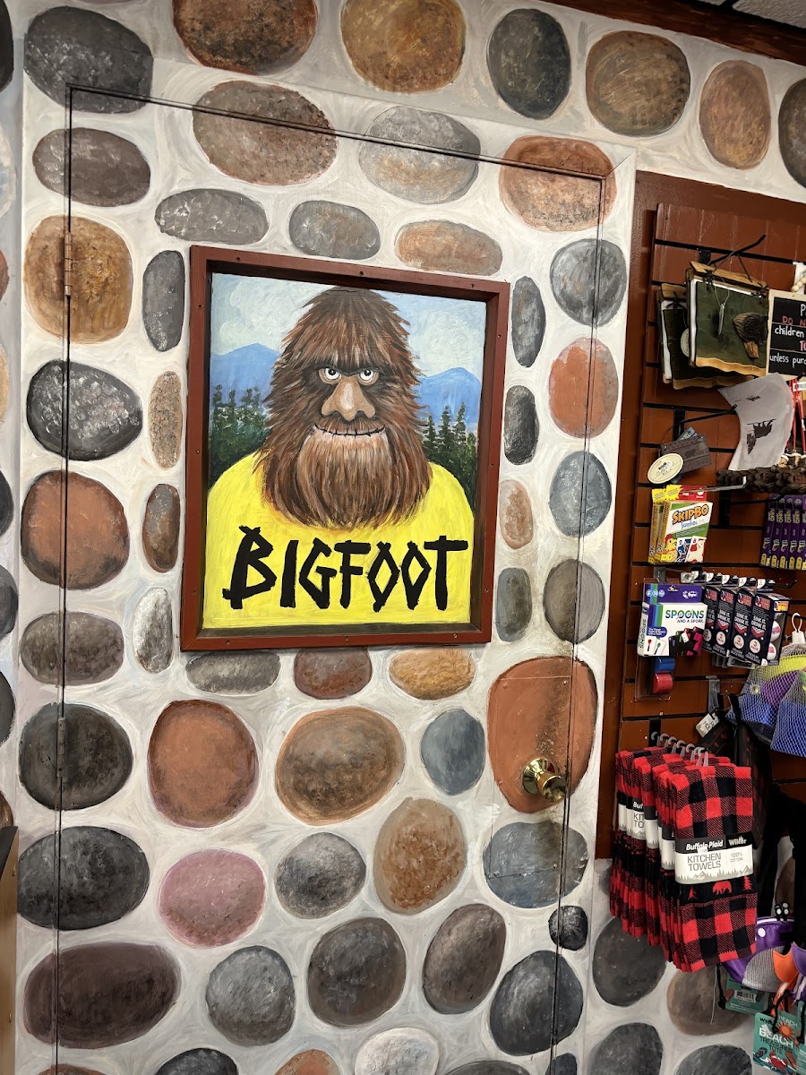 This is a weird 5-star rating. This place is in the middle of nowhere and painted up to a Bigfoot theme. The food is decent, but the owner and staff are wonderful sweethearts and the owner is having an incredible amount of fun. The Bigfoot theme is inexplicable, and really pushes this to a must see place. The owner did all the painting herself. The menu is extensive, and it's very much a diner. There are a lot of baked goods, but I'm gluten free, so I have no idea. She's just having more fun baking like the wild woman that she is. She's just adorable and this is kind of like something out of a David Lynch movie, only happy sane people and with no deaths.