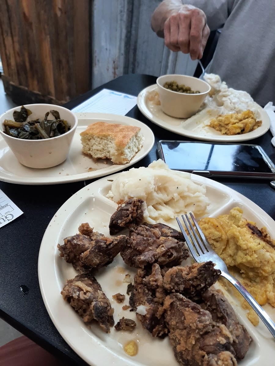 If you want good down home Country cooking this is the place to go. I had the best chicken livers ever and collard greens were great. The corn fritters were nice and sweet.