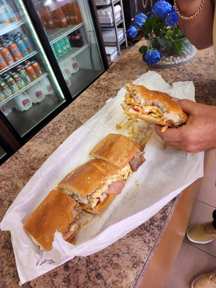 We just landed at Fort Lauderdale Airport from California around 1:30 AM on Thursday, craving a pan con bistec. I grew up in Hialeah in the 80s and always enjoyed this sandwich during my visits, but never after hours. After finding this spot on Google, which is open 24 hours, we were hopeful but cautious. To our delight, Dayana and Justina welcomed us warmly and quickly prepared our sandwiches. They were absolutely delicious! I had never tried them with cheese before, but it was a fantastic addition. The staff were so friendly that they even treated us to a cafecito colada and took photos of us. We joked that they should open a restaurant in California, as there isn't much competition there. I was amazed to learn that this place has been around for over 40 years—what a legacy! If I could give them 10 stars, I would. Just a heads up: bring cash or use the ATM inside. Thank you, Dayana and Justina, for making our experience unforgettable and will refer my friends and family to visit!!