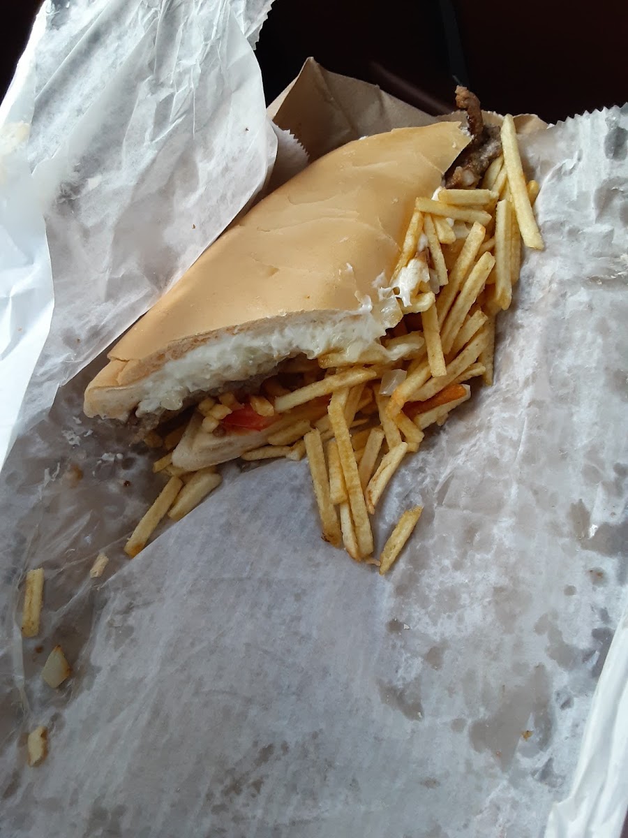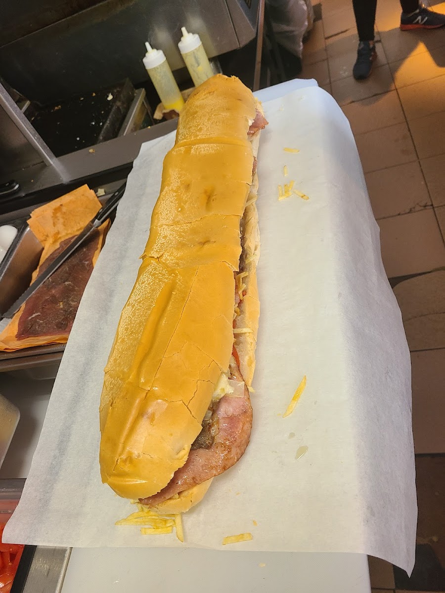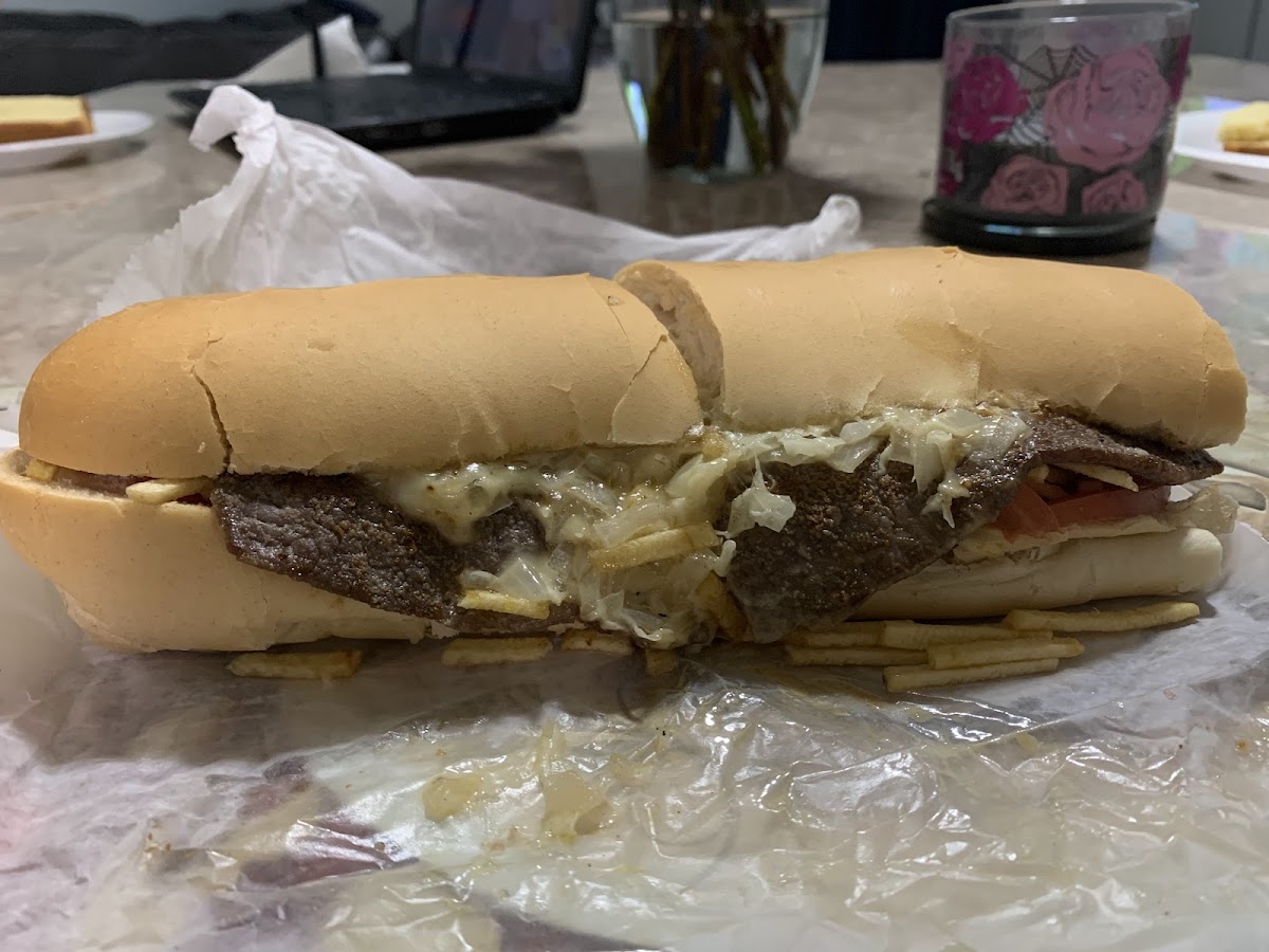 The legendary king size sandwich! This steak sandwich is definitely a treat. The steak ham, egg, onion, shoestring fries, tomatoes all make this sandwich so good. You can easily split amongst 2 to 4 people and it's under $20. This simply is a pick up n go no where to eat. Good news it's open twenty four hours.