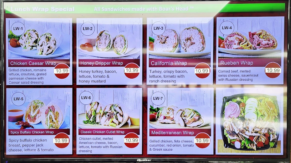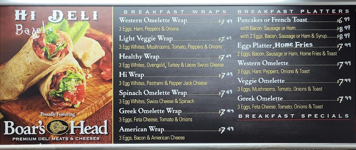 Boar's Head ham, turkey, roast beef, Swiss cheese, American cheese, Romaine lettuce, and hard boiled egg.