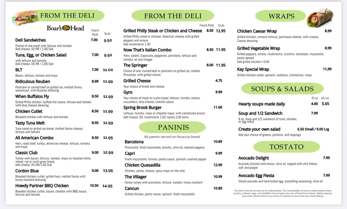 Honey mustard, roasted red peppers, lettuce, cucumbers, tomato, avocado, sharp provolone