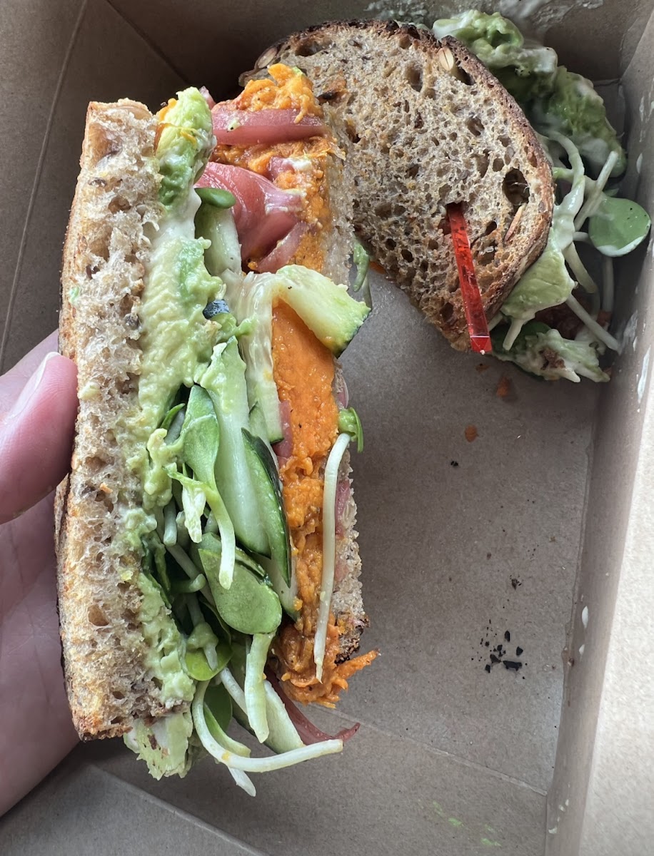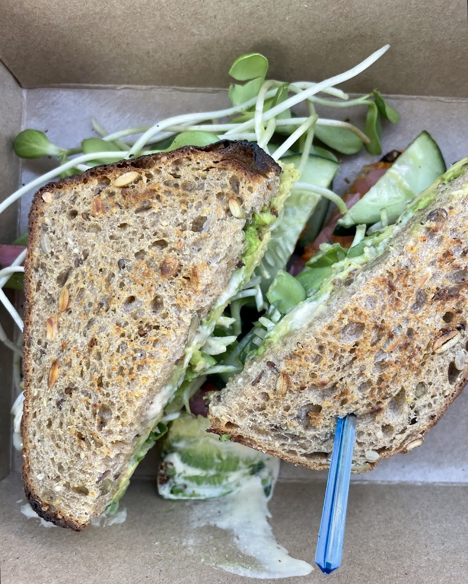 LOVE the raw wrap, been obsessed with it for years. Friends I go with love their sandwiches. Nice selection of healthier items on the shelves and fridges and a little produce section too. There's some shaded outdoor seating too. Love this little spot! So perfect to stop by before or after a hike or day at the river or yoga (East Wind Yoga is across the street :)