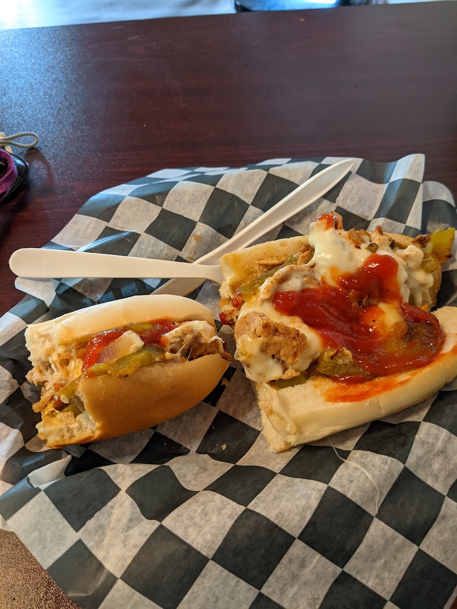 Passing through looking for a quick bite. Stopped in, small, fast and friendly service. Had 7" chicken cheese steak with fried onions, peppers, mushrooms and provolone. Excellent! Very fresh and satisfying. Everything looked great that was coming out of the kitchen. Highly recommend!