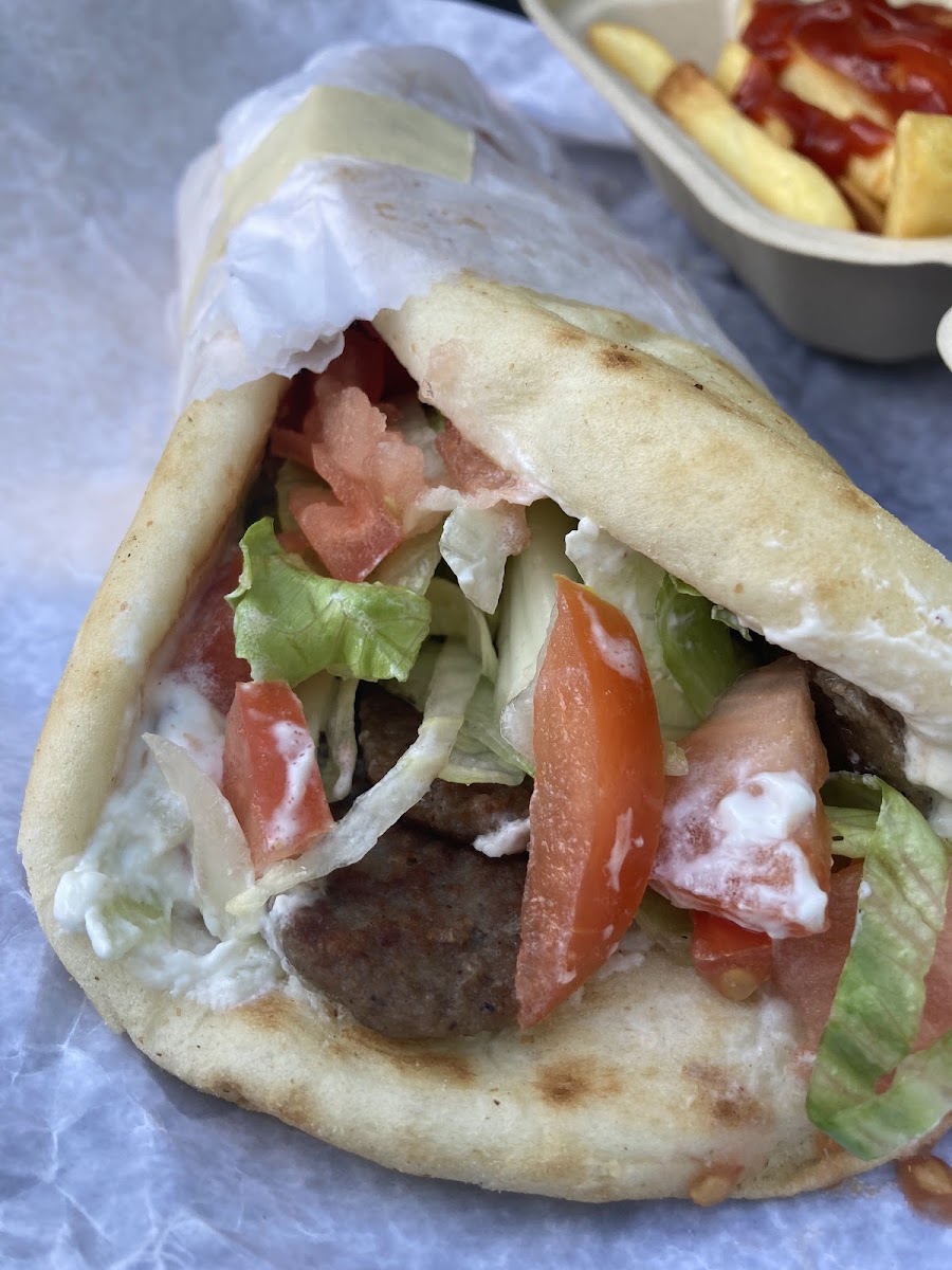 Simple , friendly roadside food destination, plus ice cream (in the summer). Beautiful view, casual setting, indoor/outdoor seating, friendly service. "The Zeek" beef gyro was delicious!
