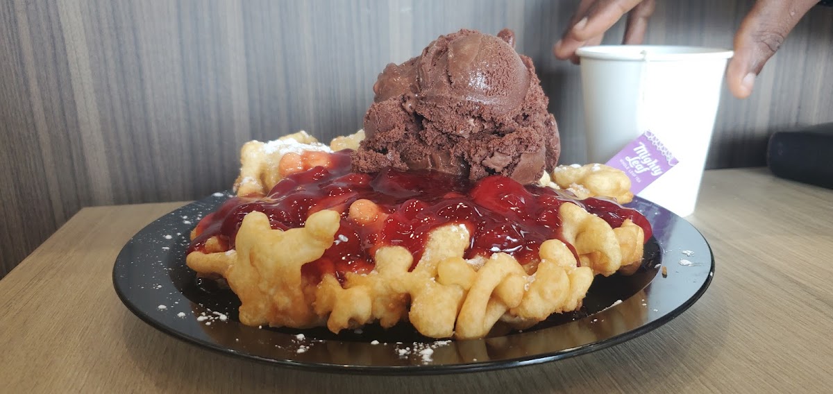 D Spot Desserts Manning Edmonton is located in Manning Town Centre, 15745 37 St NW, Bay 11B & #11C, Edmonton, AB T5Y 0S5, Canada. This dessert restaurant boasts a substantial 3802 user reviews and serves a diverse menu with numerous dishes. Signature items include the Bueno Waffle, Milk Cake, Tandoori Chicken Hotdog, NY Lotus Cheesecake Slice Only, and Dspot Funnel Fries, delivering a variety of sweet and savory dessert options.