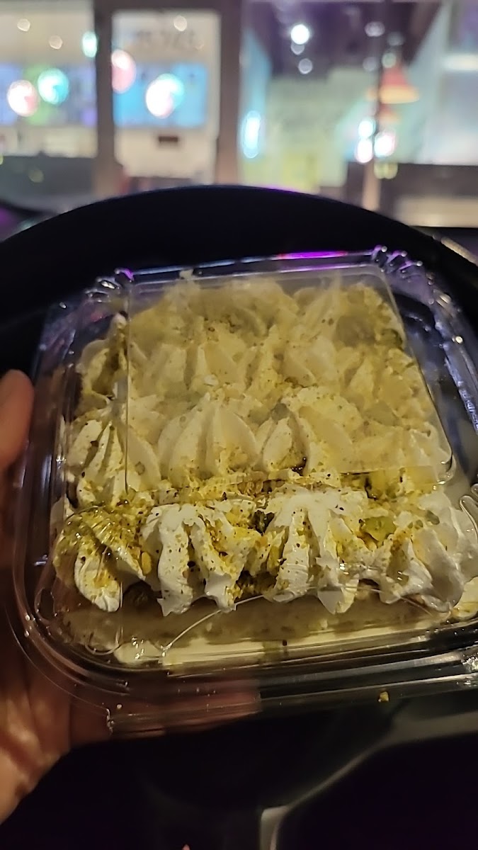 I visited this charming dessert café a few days ago. The space is clean, well-lit, and beautifully designed—the colors and interior décor are absolutely delightful. Both the food and service were great. The dessert was incredibly photogenic, and the ambiance felt warm and friendly. A lady named Sukh (or Suky?) was especially accommodating while serving our food and drinks. I honestly have no complaints—though I do want to share a small, unexpected twist to the experience (which wasn’t the café’s fault at all). I had invited my mum out for dessert and we ended up at this only dessert-focused café in the neighborhood. I thought she would join me in ordering a slice of cake, but instead, she impulsively chose the fried chicken wings—which she usually avoids for health reasons. I hadn’t had deep-fried chicken, especially wings in a long time. They were served with thick-cut fries, and both the garlic honey wings and the fries were incredibly tasty—10/10. I also loved my cake: sweet, delicious, and generously portioned. However, when I got back to the car and looked in the mirror, I noticed a fine line had appeared under one of my eyes—something I hadn’t seen that morning (or ever before). Technically, I gained a new wrinkle right after indulging in a combination of fried chicken, fries, and cake. So while I absolutely recommend this café for its dessert, meals, snacks, service, and interior—everything is truly wonderful—those who are overly conscious about their skin health might not want to, or think twice before indulging all at once. The café itself is excellent in every possible way: clean, stylish, flavorful, and welcoming.