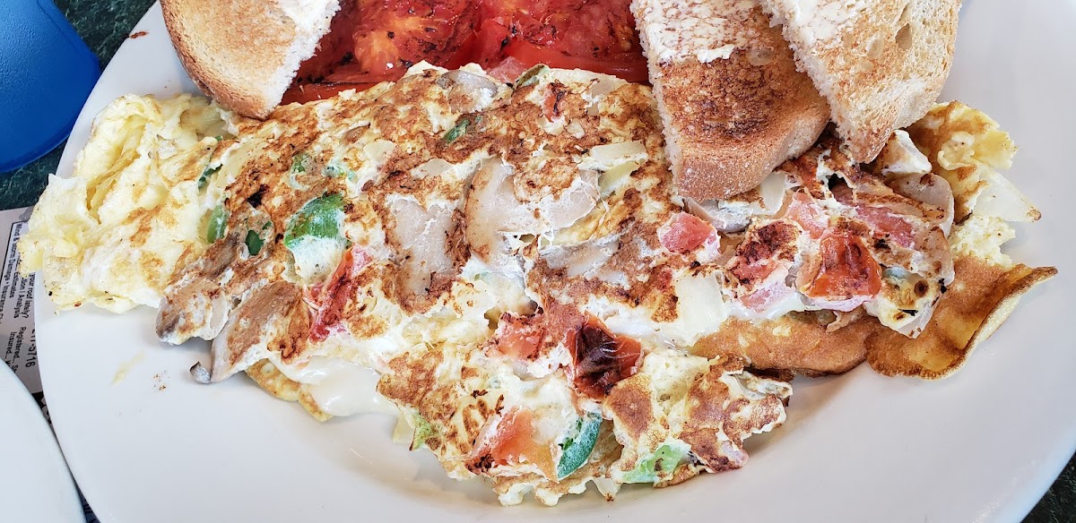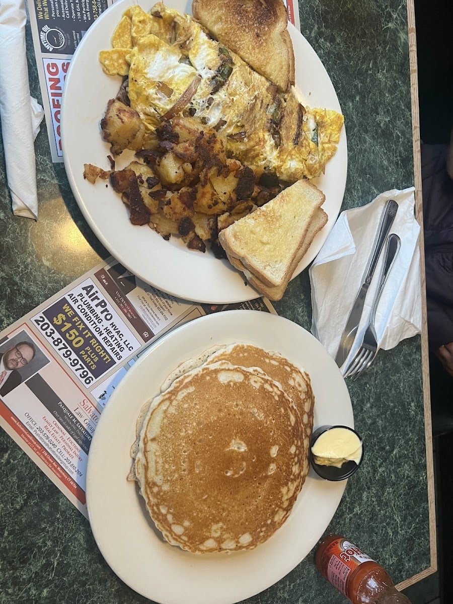 Sooo this place was so yummy omelette very cheesy and delicious, place is clean… waitress wasn’t super friendly but she wasnt mean either just takes ur order n goes she was good tho brought our box and ticket before we finished eating , some people don’t like that i do cause then we don’t have to wait , soda was flat but chocolate milk was good i’ll definitely go back and recommend