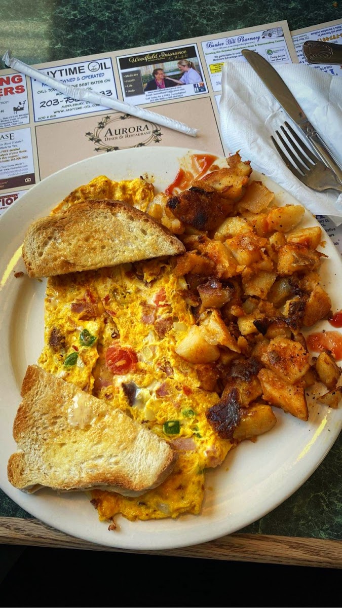 Aurora Diner located at 2 E Aurora St, Waterbury, CT 06708 is a cozy diner with a solid reputation supported by 661 user reviews. Known for its classic diner fare, it features a total menu with several standout dishes including Home Fries, Chicken and Waffles, Western Omelette Potatoes with Wheat Toast, Spanish Omelette, and Breakfast Potatoes, catering to breakfast lovers and comfort food fans alike.
