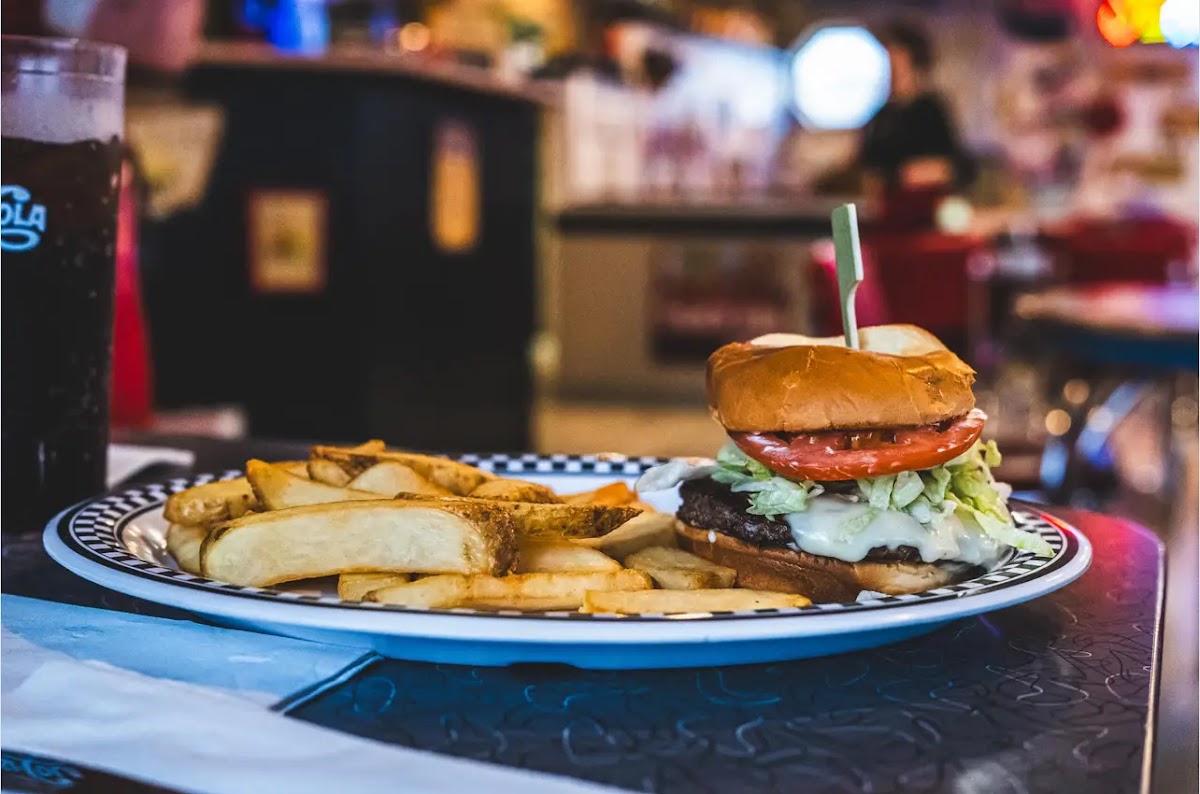 What a cute 50s style restaurant! My husband and I visited on a Sunday and even though we had the restaurant all to ourselves, they were bustling with their carry out service!! The service we received was outstanding with friendliness, not long to wait for our food or beverages refills, and the front counter girl was smiley and very attentive! Pictured is their French dip(I added Swiss cheese and grilled onions) and my husband enjoyed their combo stuffed sandwich. We expected their deep dried pickles to be the small coins, however they offer spears! So yummy! Our first time and we will be back!!