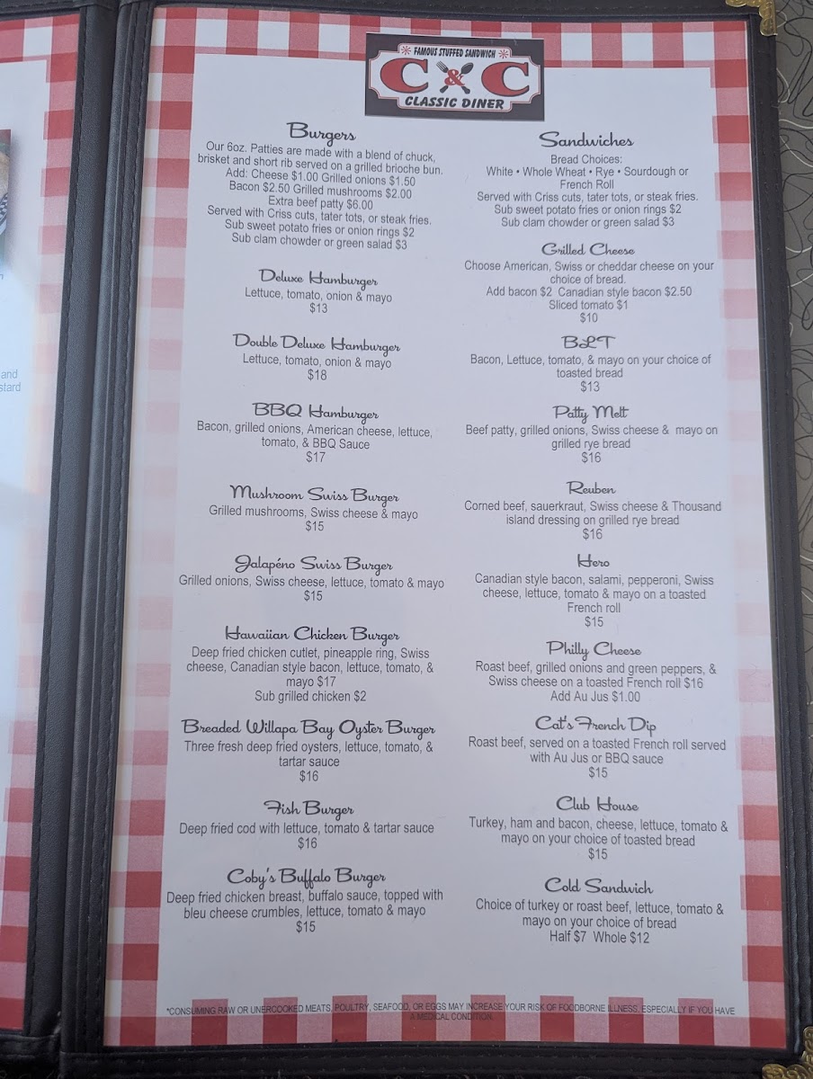 Roast beef, grilled onion, green peppers, and Swiss on a toasted French roll. Add au jus for $1.
