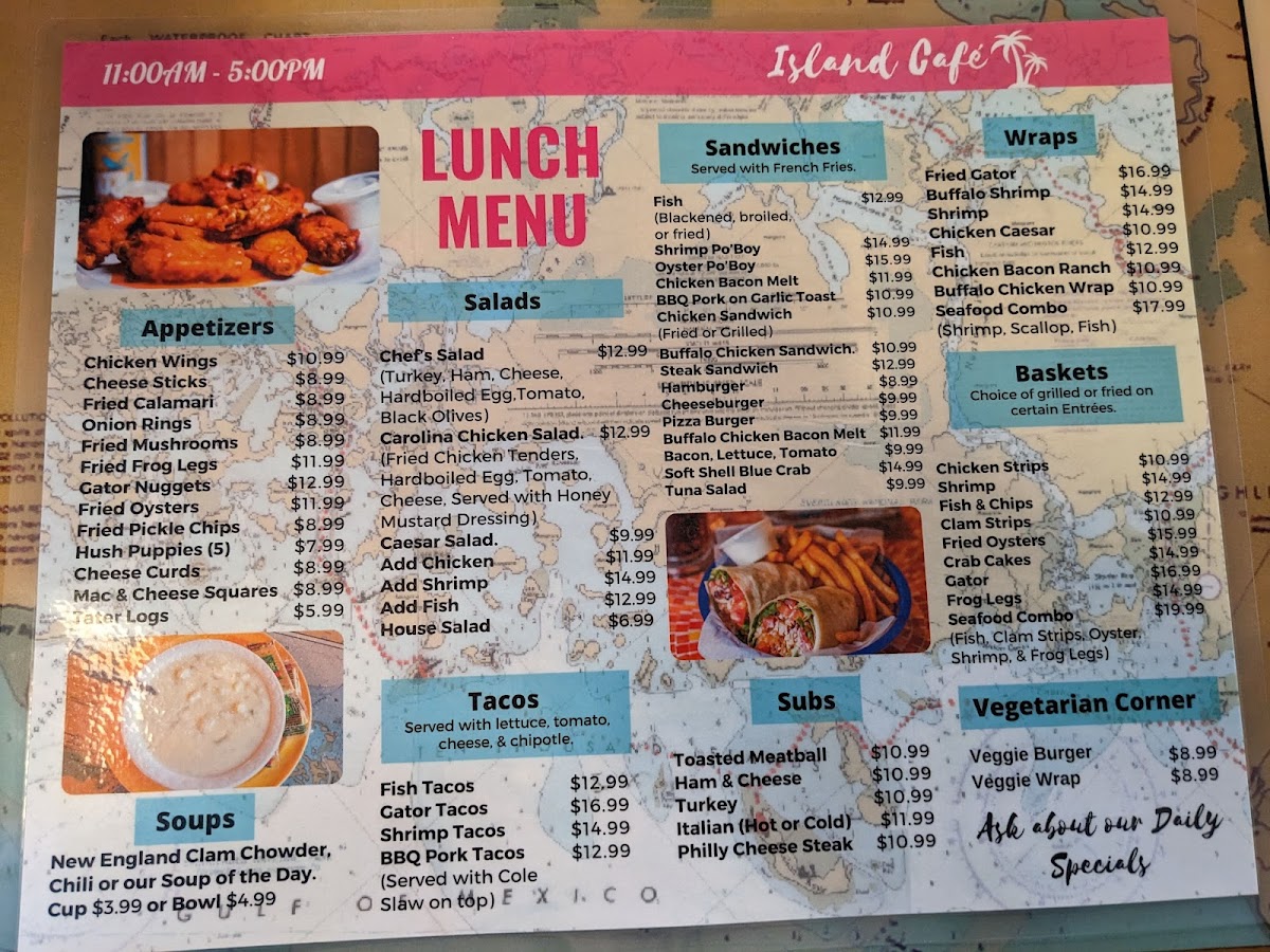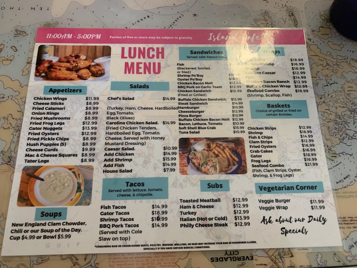 (Fish, clam strips, oyster, shrimp and frog legs)