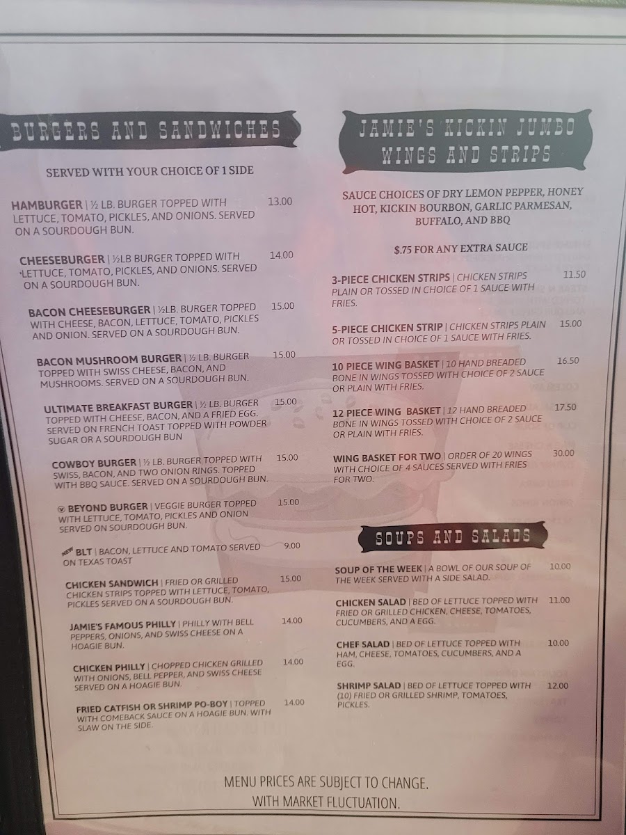 1/2 Lb. Burger topped with lettuce, tomato, pickles, and onions. Served on a sourdough bun.
