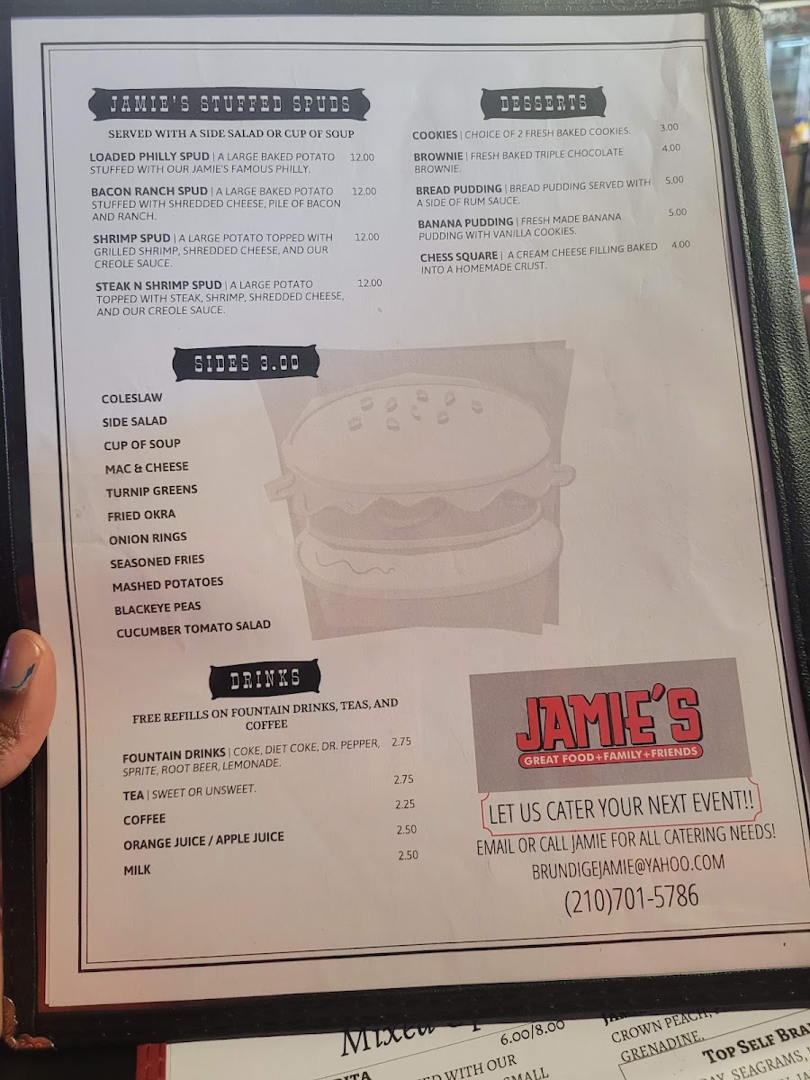 Jamie's famous Philly on top of a basket of fries. Comes with bell peppers, onions, and swiss cheese.