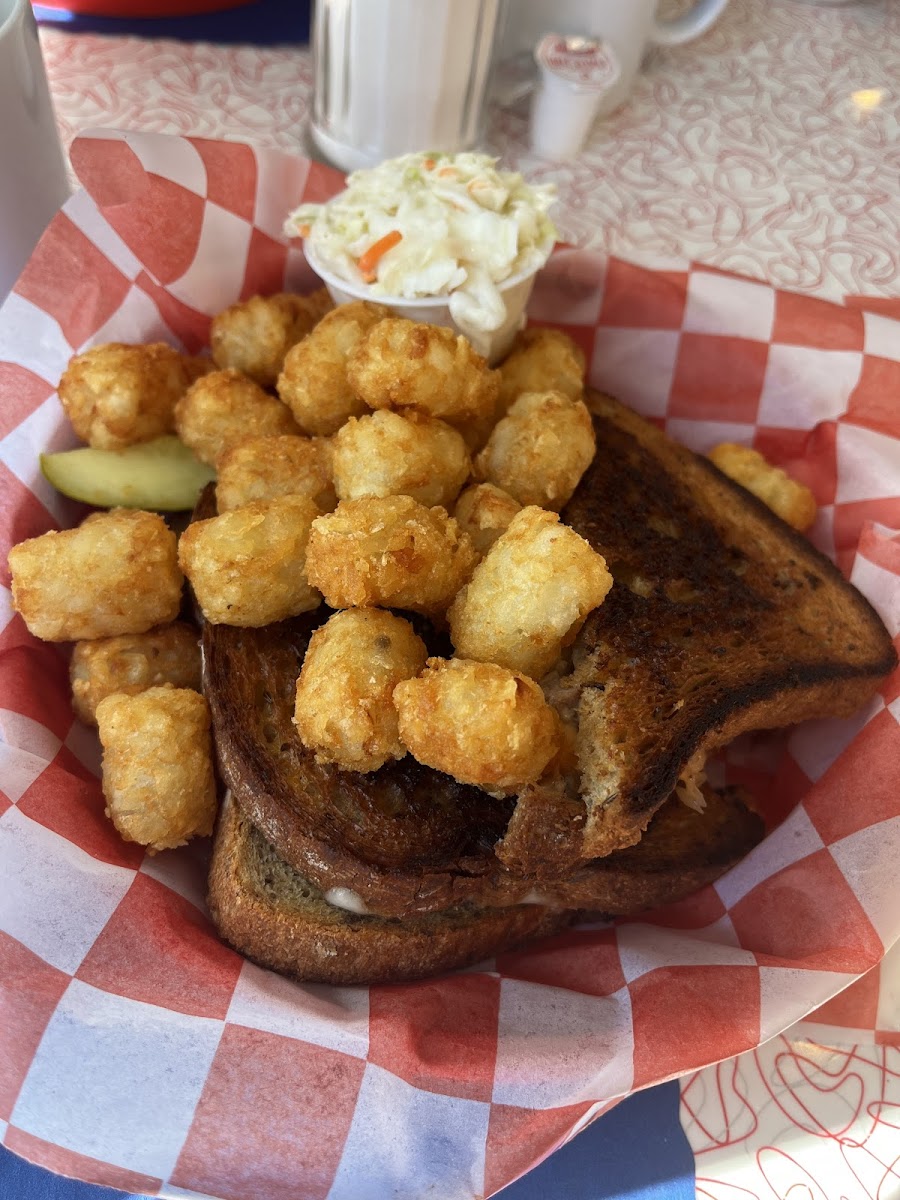 We stopped for dinner on impulse knowing the breakfast was good. Our server was awesome, the 50s music was spot on and the sandwiches (Monte Cristo and Rachel) were outstanding. Take my advice and upgrade to the tater tots. You'll thank me later! Oh! We boxed half our sandwiches to save room for the carrot cake and coconut meringue. So good! Prices were affordable too. It's a winner!