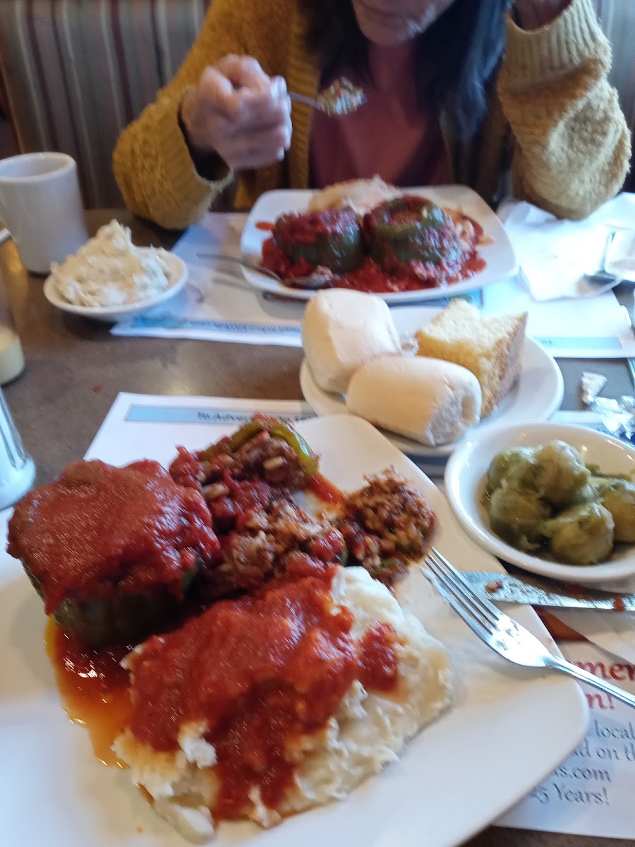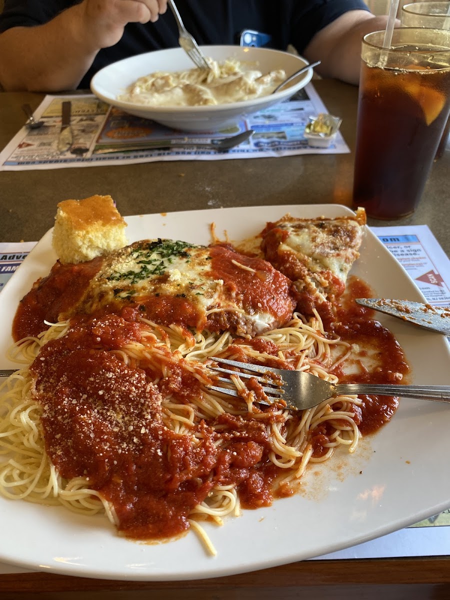 Stopped at the diner on a cold day for a bowl of chicken pasta soup. It was HUGE and delicious! It also came with a roll & cornbread. You must try it, this is a winner and I will be back again for this soup.