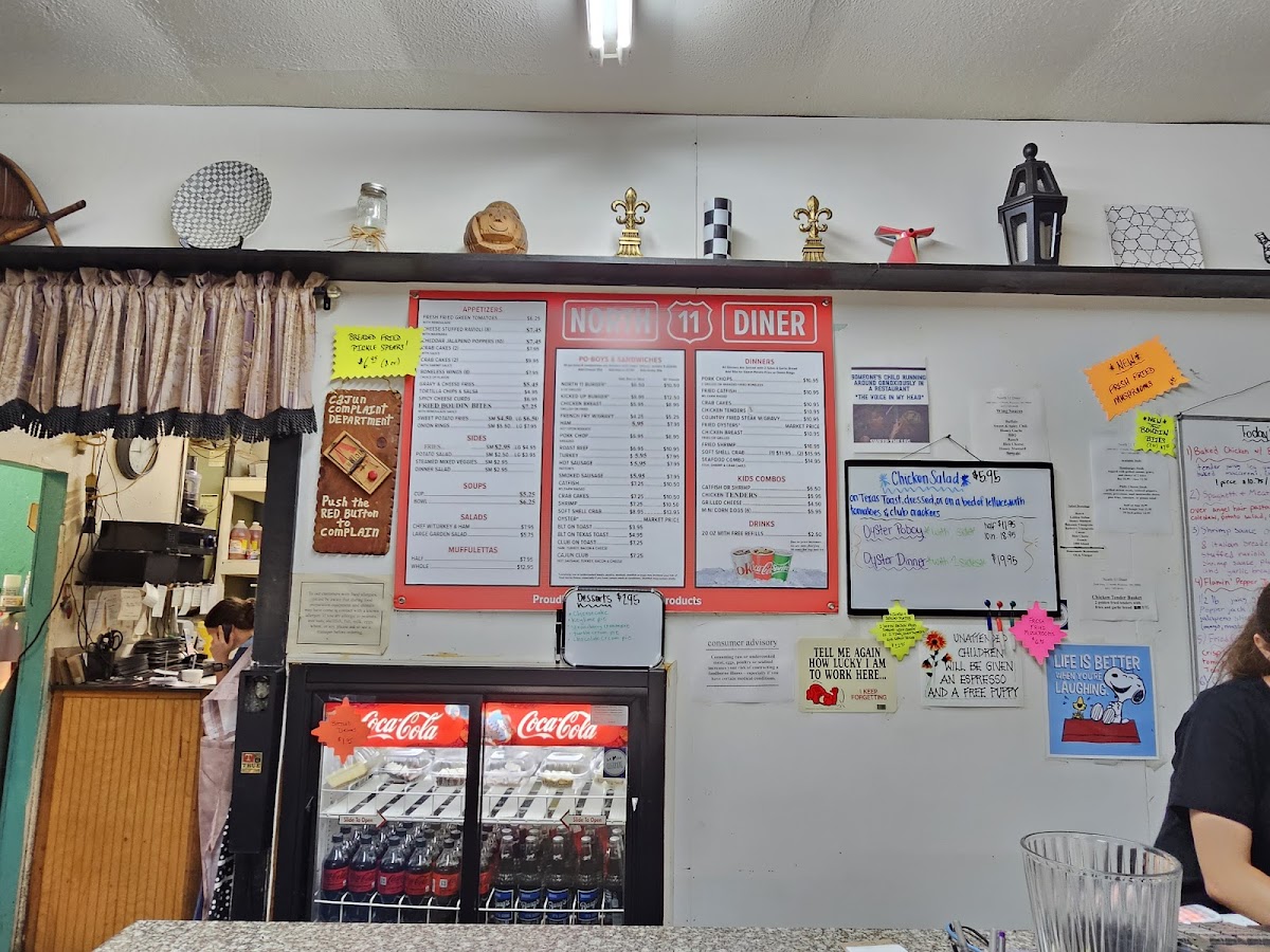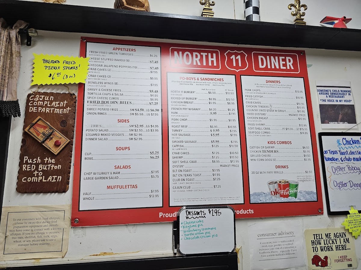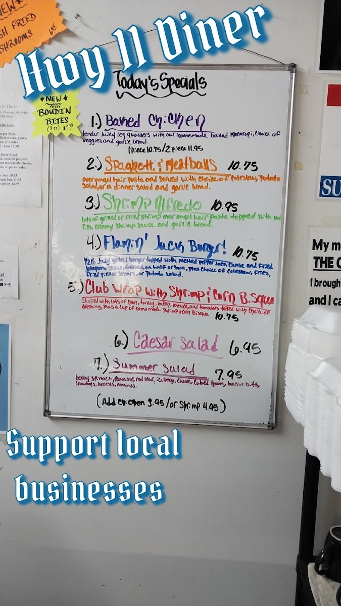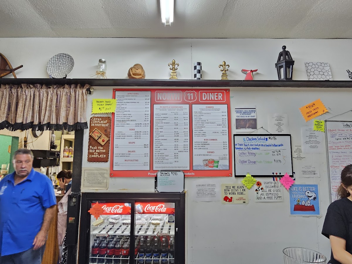 Golden-fried catfish strips over angel hair pasta with rich creamy shrimp sauce. Served with garlic bread.