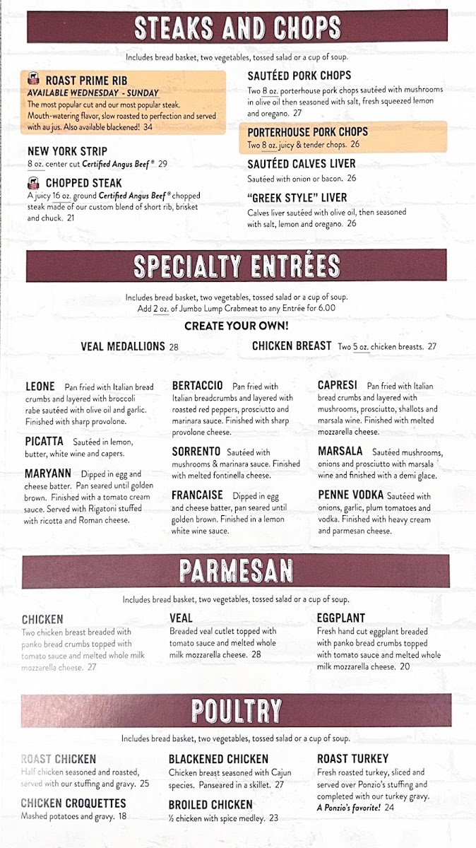 half chicken seasoned and roasted, then served with our stuffing and giblet gravy. a ponzios favorite!