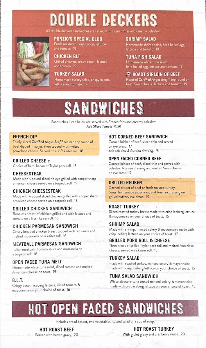 fresh roasted turkey, sliced and served over ponzios stuffing and completed with our giblet gravy