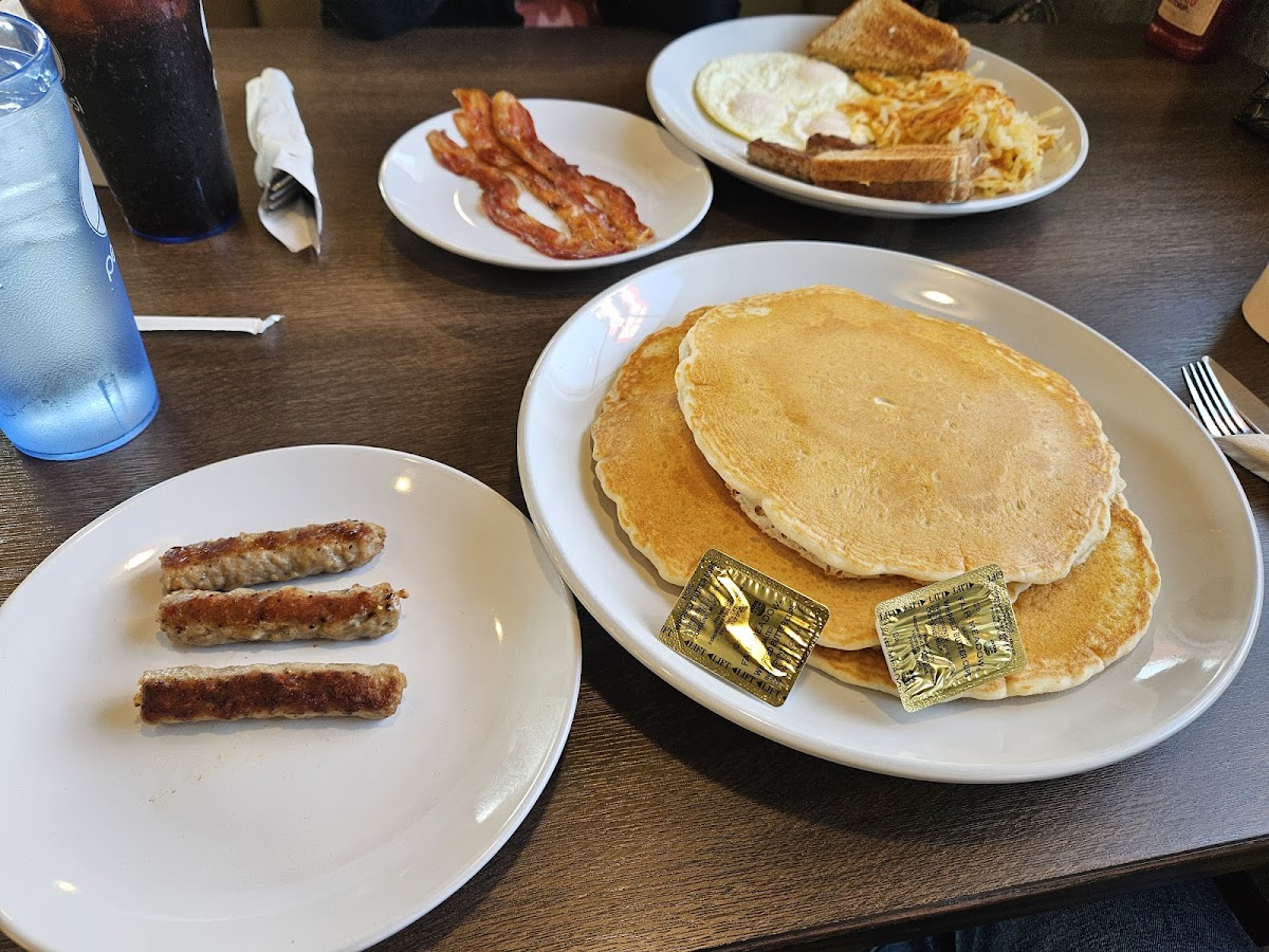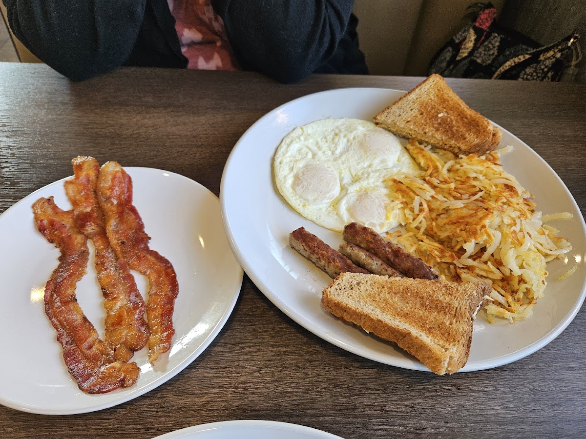 Overall, this was a clean local restaurant with good service and good food. We will be back. My wife and I came in for breakfast. She had an eggs, meat, and hashbrown plate. I had the 3 pancakes with a meat. She enjoyed her meal and really liked the hashbrowns. My plate of pancakes was good, but nothing revolutionary. What I will take away from my breakfast is my plate of pancakes was big enough it almost beat me! That almost never happens. So, please know their plates are bigger than they appear at first glance in the pictures (use the coffee mugs for reference), and the pancakes filled the plate. This restaurant went through a renovation about 4 months ago (June 2024), and everything is clean, freshly painted, and comfortable. The bathrooms are clean. It is clear the staff are keeping up on everything.