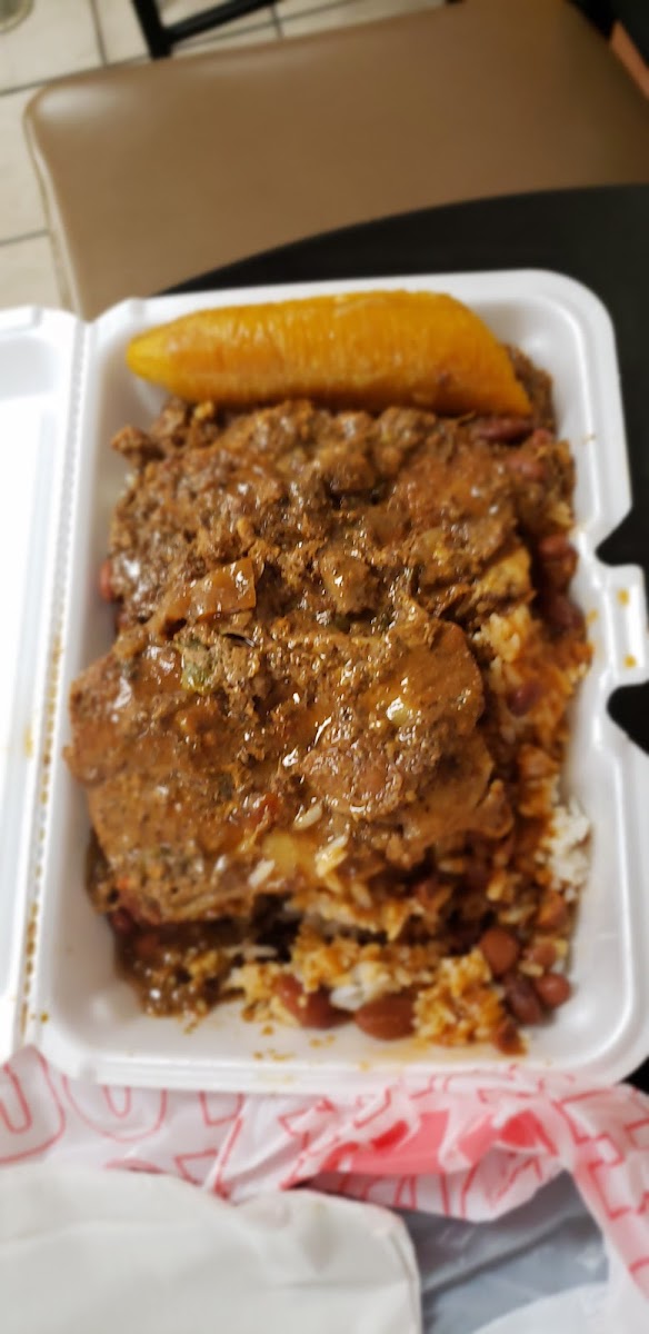 Located inside the truck stop, no advertising outside except for indian food. Can definitely work over from the Flying J since this truck stop isnt cleanest. Great Dominican food, you can tell it was made with love because the quality was definitely there. I had the carne de res guisada (stewed beef) and the black rice and and beans. Plate was on the pricey side $18 but it was worth it. I also had 2 chicken Empanadas, they weren't too bad but ive had better and also had worse. Will be back again since not too many places with Dominican food and truck parking.