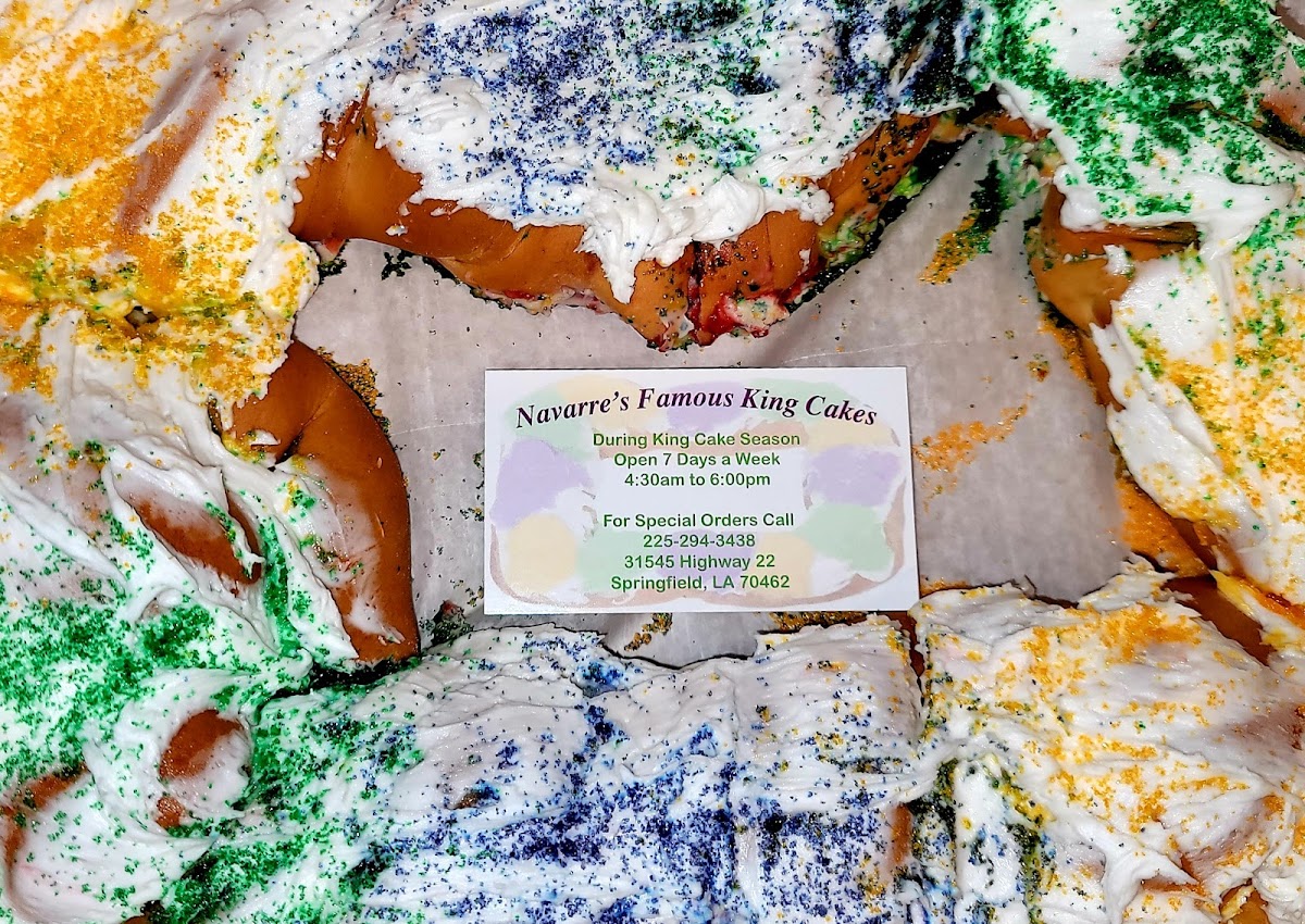 Born and raised in Louisiana and I never liked King Cakes until I tried the strawberry cream cheese one from here! I believe they must use donut dough for their cakes because they are absolutely delicious! Not the hard bread texture like most others! We get one every year! I wish they sold them around Christmas time too.