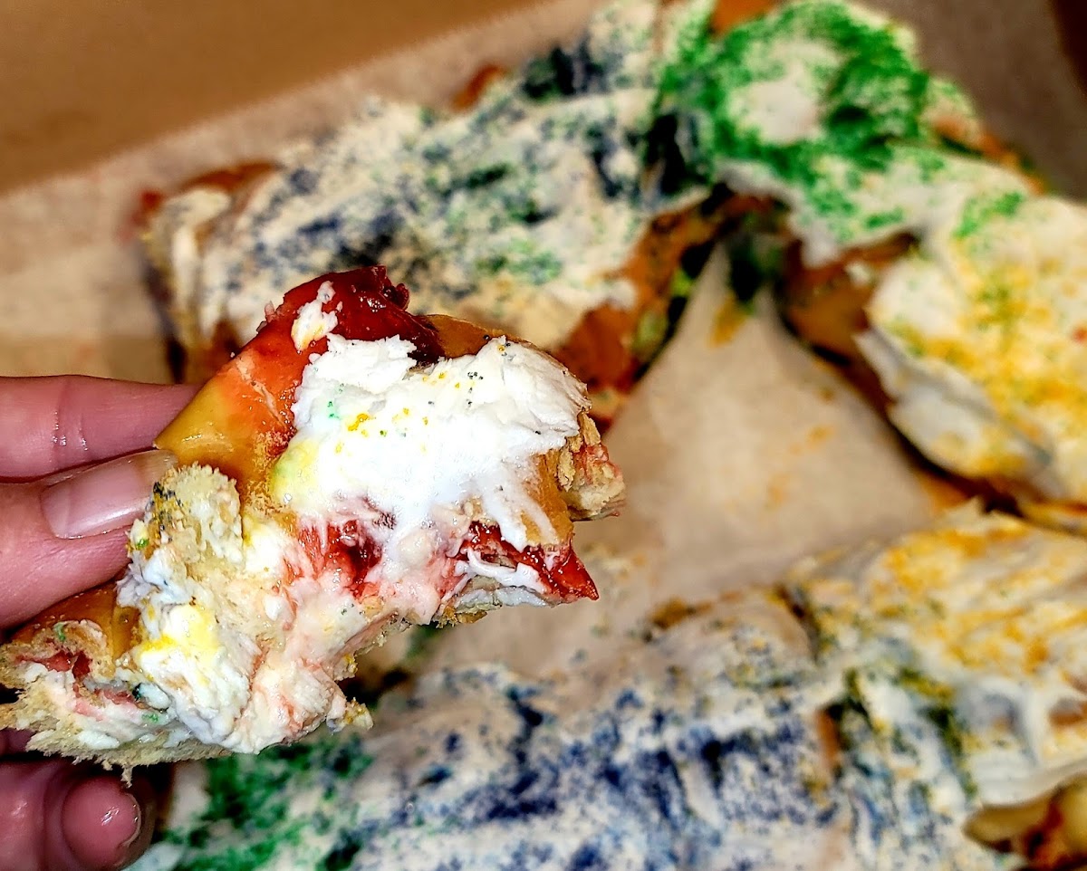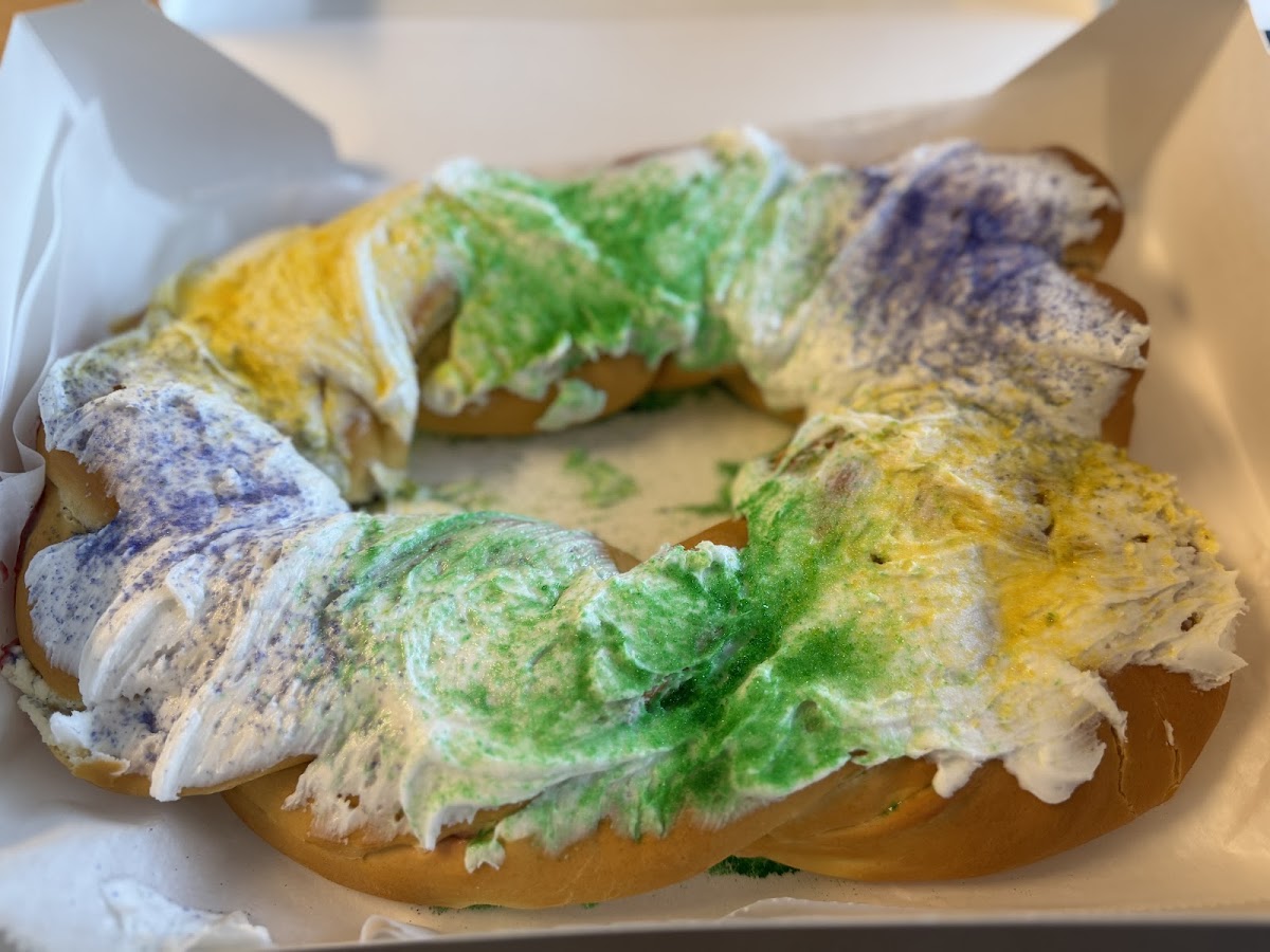Got to experience a Strawberry Cream Cheese King Cake for the first time. Came for a Lemon King Cake but they were already sold out. I have only had a Rouses Market King Cake before so from that to this one was no comparison in how fresh it was. 10/10 and got even better after day two as we stuck it in the fridge to stiffing up the strawberries/cream cheese filling and I would say that’s the trick!