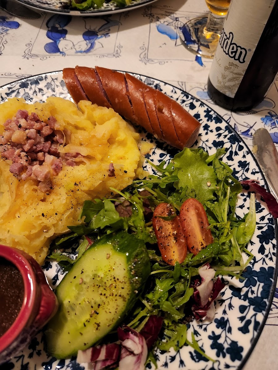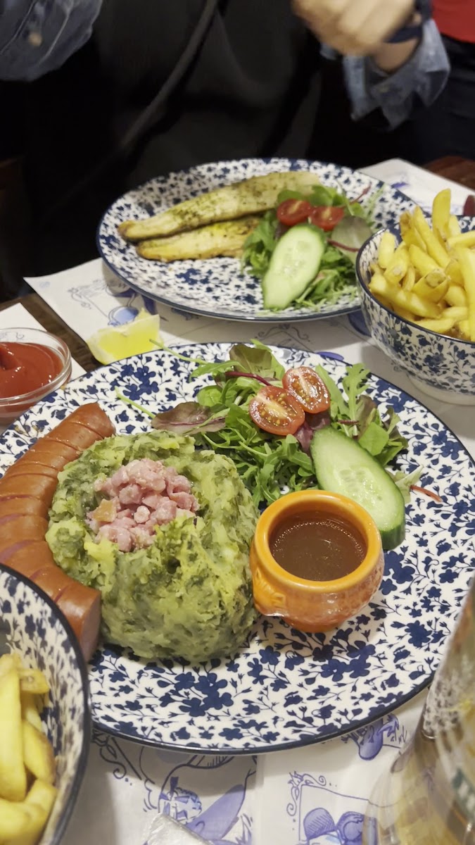 We wanted to have a traditional Dutch meal so decided to visit. My fiancé has made me Stampot before (he is Dutch but lives in England so we had to modify it) so it was nice to have a true Dutch experience. Me and my mum had Stampot (me with sausage and her with meatball). My 2 children had the Chicken Schnitzel which they loved (I tried some and it was amazing). We also had the Appel Tart for desert which was lovely. The building is very quirky, which we loved. There was just something missing from the atmosphere which I can’t quite put my finger on. The waitress wasn’t quite as welcoming and happy as the waiter but it didn’t lessen our experience. One thing to note, if you have mobility issues you may struggle here, especially with getting to the toilet which is up some very narrow winding stairs.
