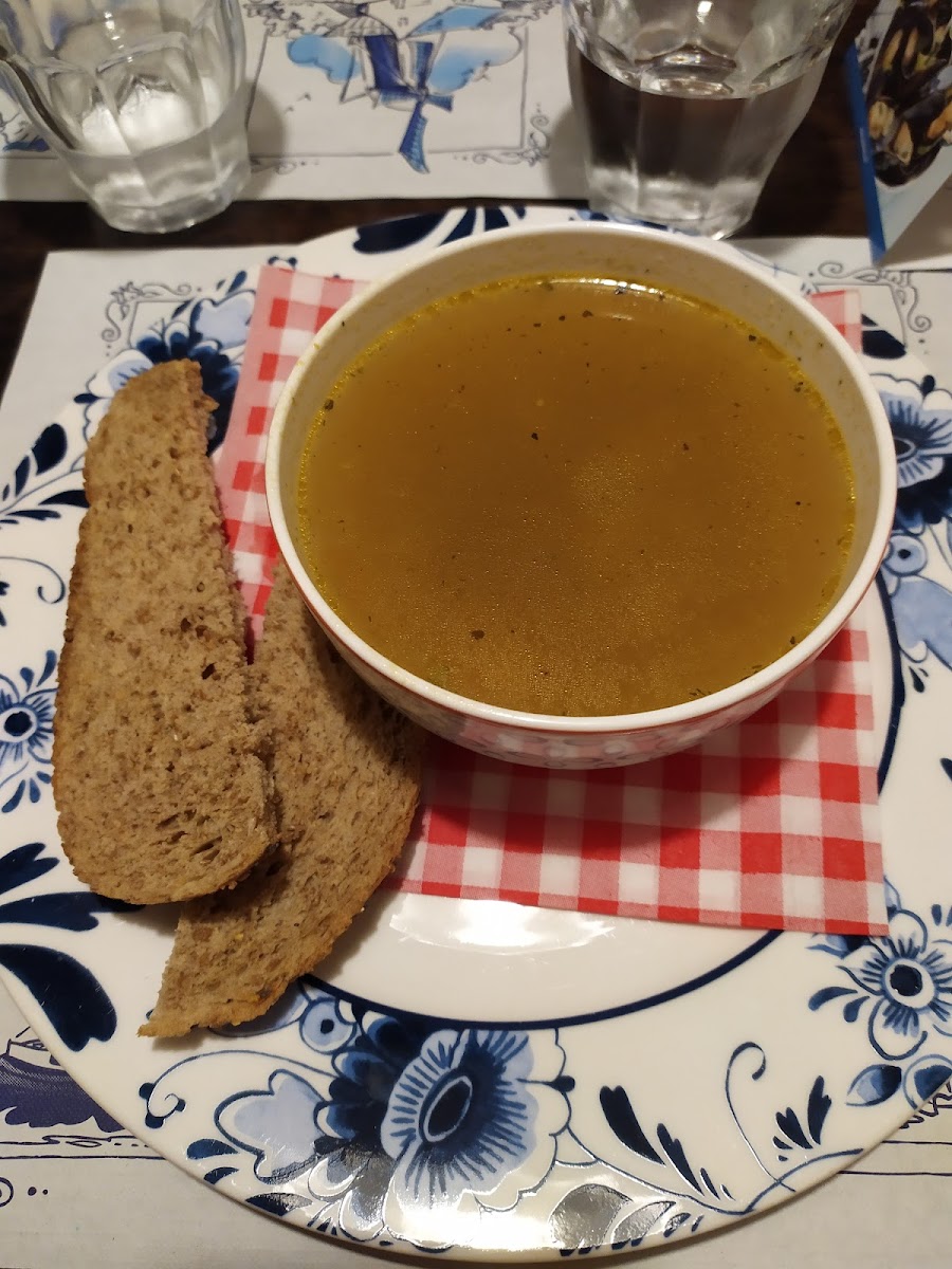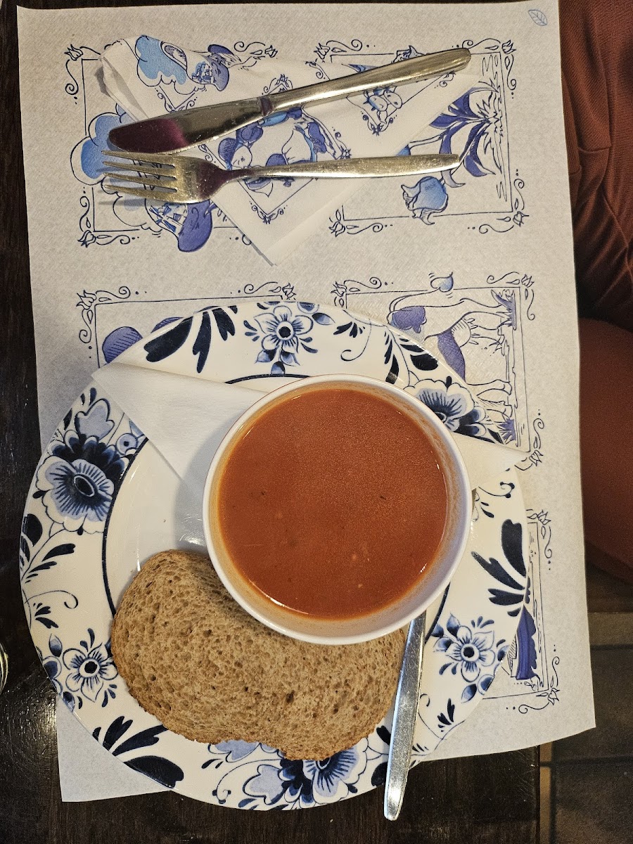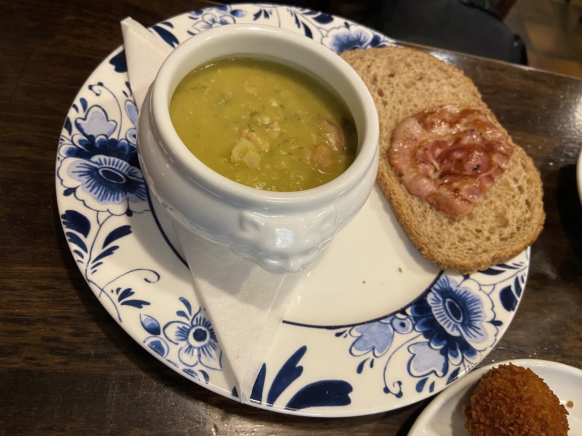 Authentic Dutch food, served in an milenia old location. Had a pea soup to drive off the chill and rain. It still amazes me that the world's notorious spice traders, don't spice their own food...ever heard of salt and pepper?! Fair pricing for the location, and attentive service. Pop in and rest your legs...