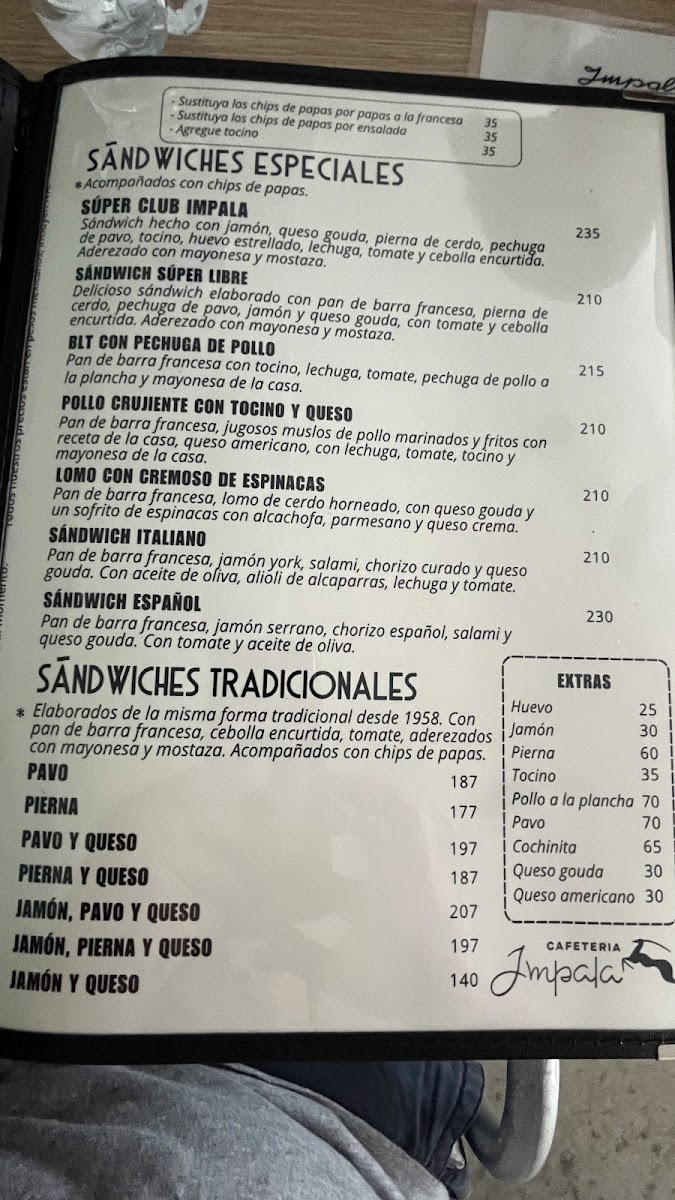 Cafeteria Impala Menu