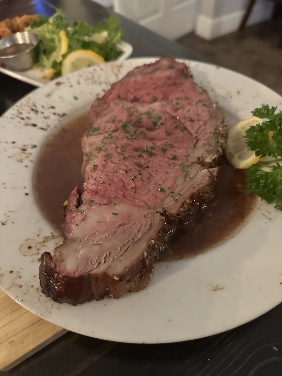 Everything was really good. It fell short of great and 5 stars because the deviled eggs were missing something. The egg flavor overpowered the stuffing. The salads were fantastic! The pecan vinaigrette on the side salad was wow! The grilled romaine salad was a great surprise, I highly recommend it. The lump crab soup was awesome! The prime rib fell short of expectations. The flavor just wasn't there. Overall it was a great experience and the staff was great. Better than most other restaurants we go to.