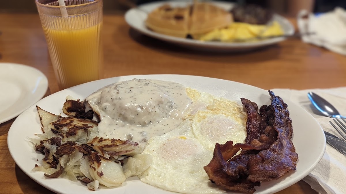 Classic mom and pop style diner. They had a lot of regular customers that the servers knew by name, always a good sign. Portions were large. Very tasty!! My hubby had the chicken fried steak. I had the breakfast skillet. They have a lunch menu that looked good. Breakfast is served all day. I didn't see mimosas or beer on the menu. Limited outdoor seating. Service was phenomenal!! Our server was very attentive and friendly. The food came out quick, hot, and accurate. We will definitely be making this a regular stop.