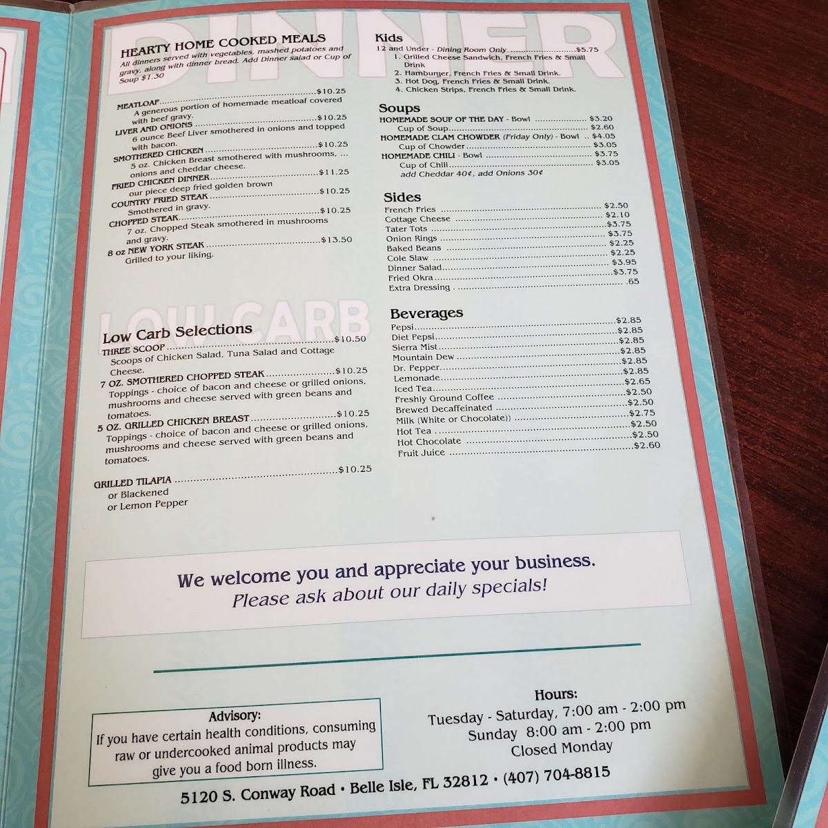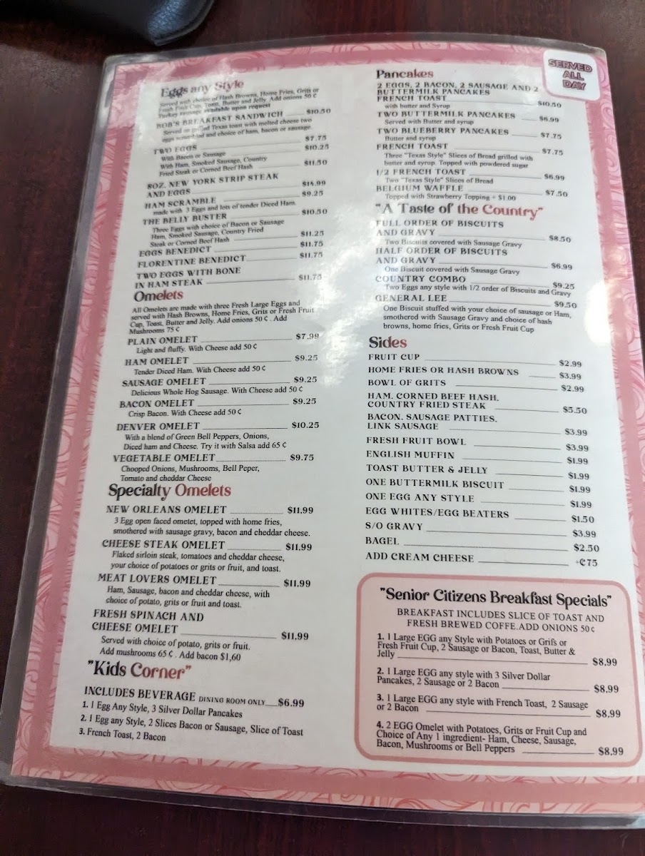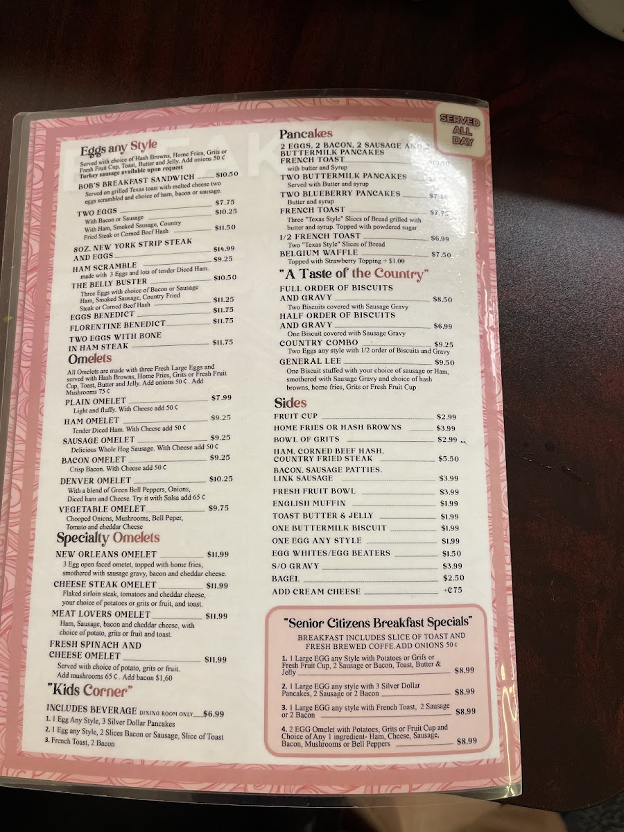 Bob's Family Restaurant Menu