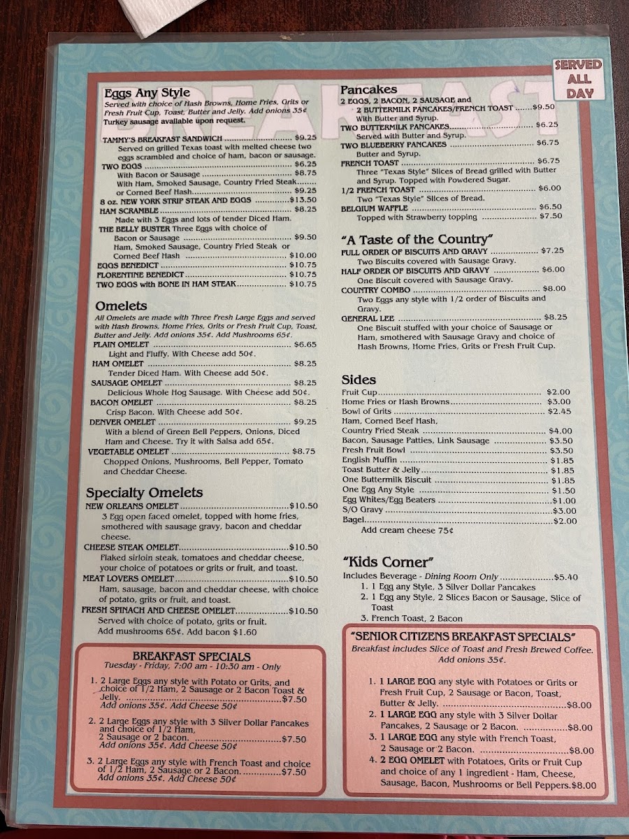 "Senior Citizens Breakfast Specials"