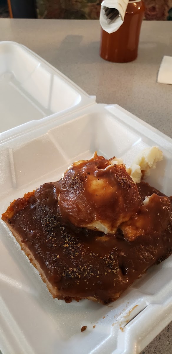 1st time here. I had the hot beef on mashed potatoes and she had the breaded chicken sandwich with fries. Both were excellent and hot. Portions were huge. Waitress was excellent. Highly recommend. We will be back.