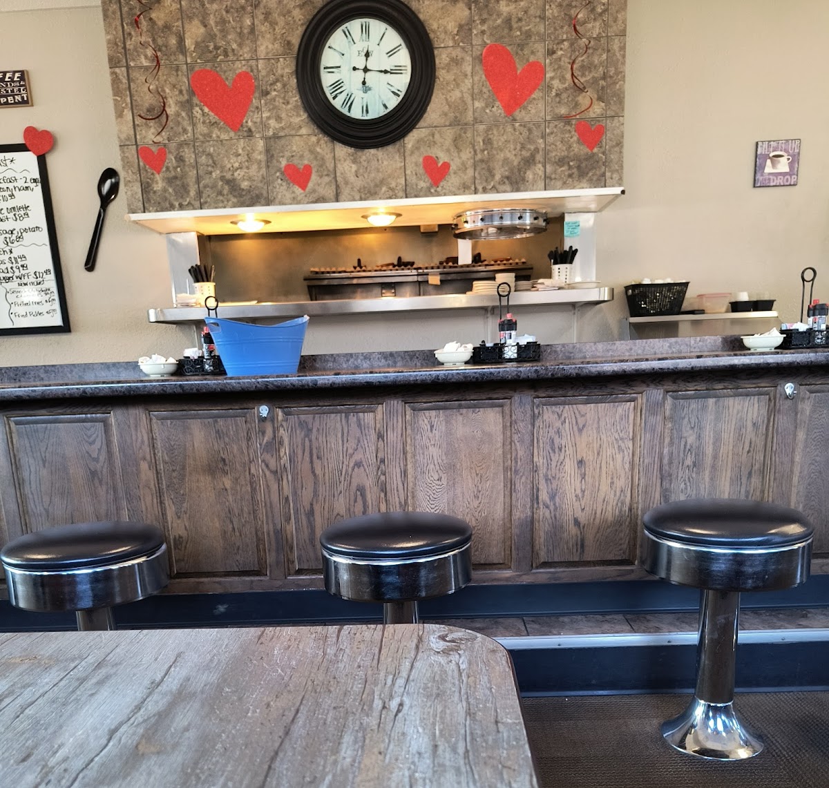 Cute place to stop for great breakfast! You can sit in booths or at counter. There are tables in back for bigger groups. Food is fast and delicious. Stop on Wednesday and get the best homemade potato pancakes all day!!