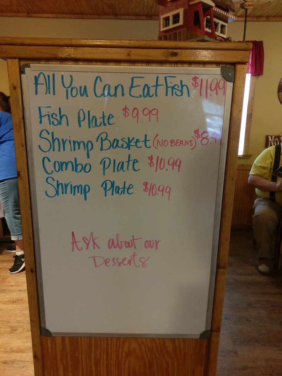 Served with Cole Slaw, Pinto Beans, French Fries & Hushpuppies