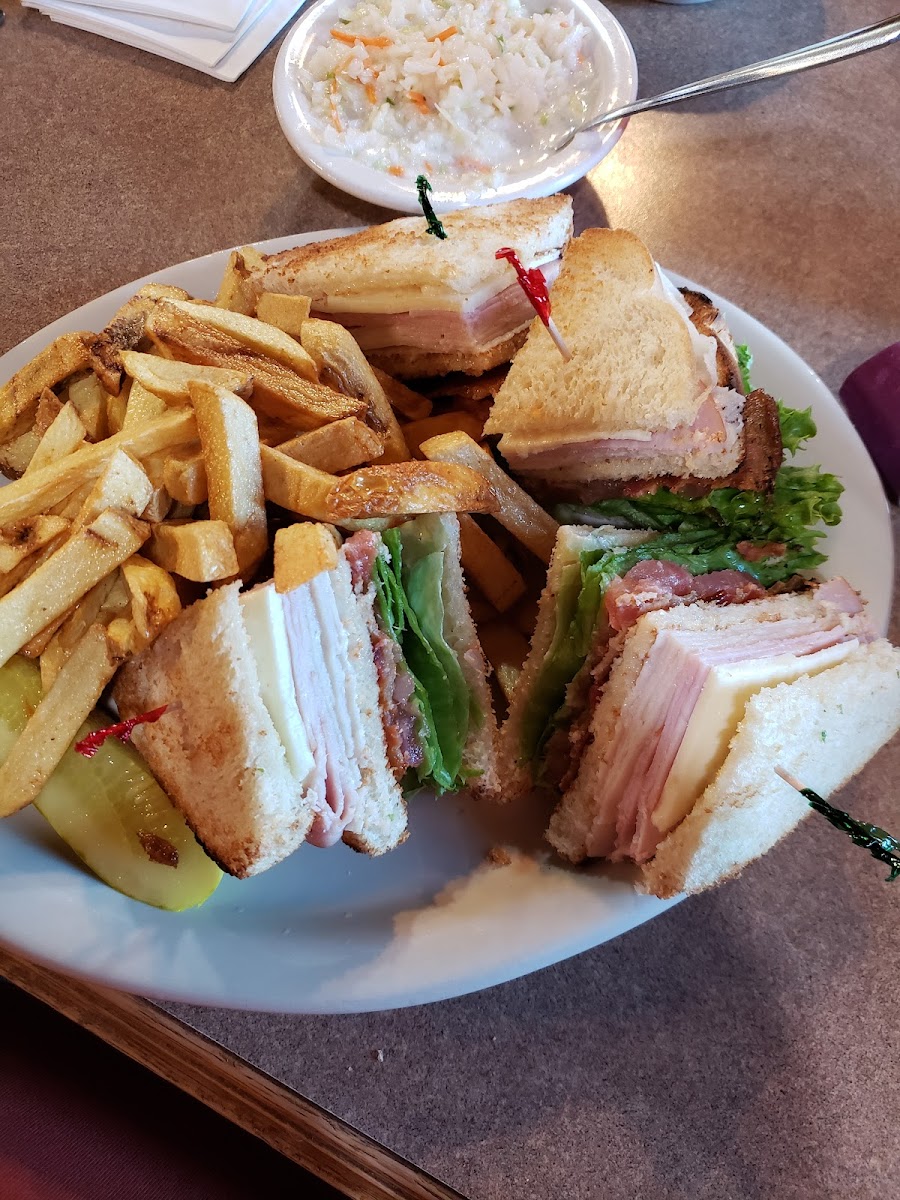 Got Root beer as a drink. They serve coke products. The ruben sandwich as the main meal which consisted of corned beef, thousand island dressing, and sauerkraut on rye bread. The corned beef was less processed than I'm used to as I could actually tell it was beef which was a nice change. It came with two dill pickles on the side and sweet potato fries accompanied by a cinnamon shaker and marshmallow dipping sauce on the side as well which was suggested by the waitress. Speaking of which the staff here was great, personable, and friendly!