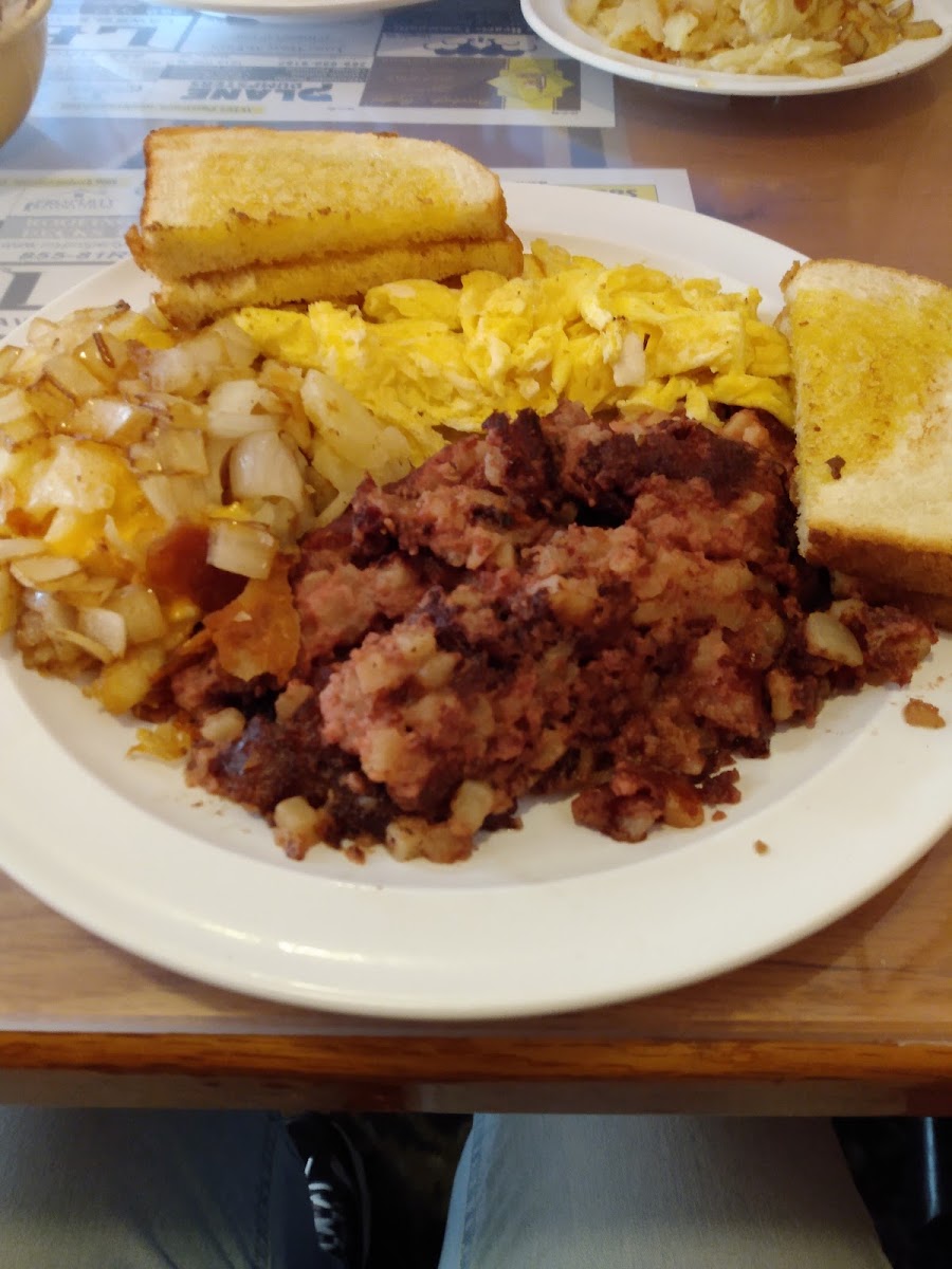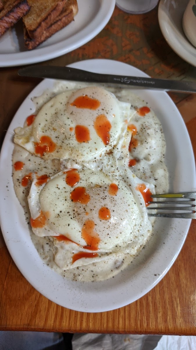 Had breakfast. Wish I'd tried the pancakes!! Tea was a little strong but they have a very busy business so no complaints. You don't leave hungry. That's for sure. Lots of regulars on a Saturday. Busy busy.