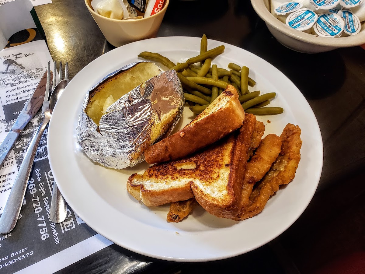 No complaints. Fun local diner with tons of family photos on the walls. Packed with local folks, it obviously has a great reputation. The food was good and service was friendly. Overall a good choice in the area.