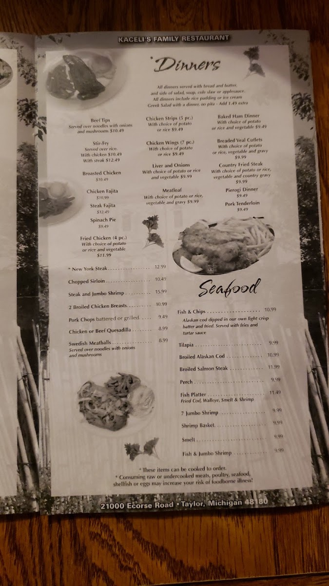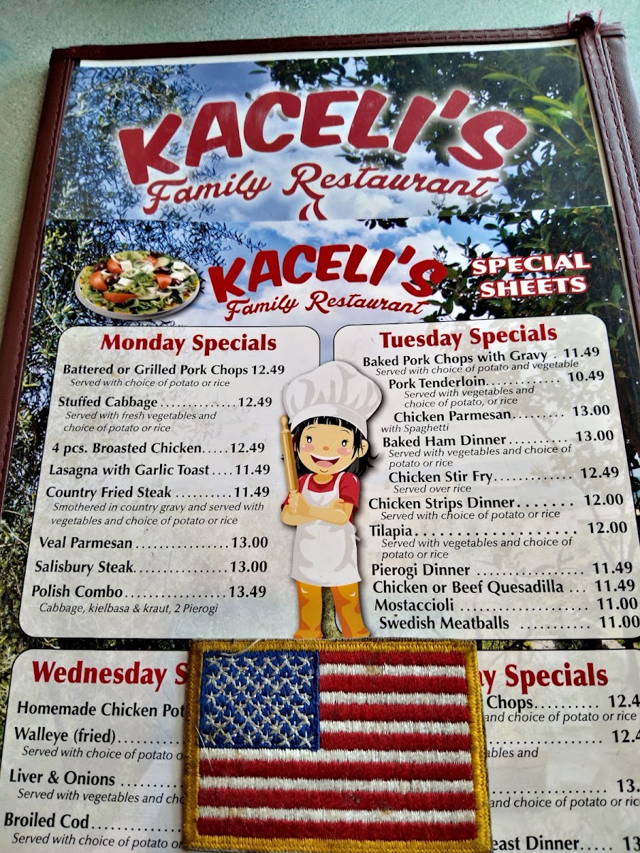 Cabbage, kielbasa, kraut, and 2 pierogi.