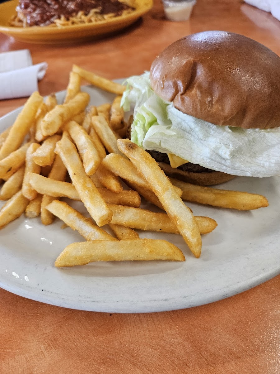 The burger, the actual just meat part, is so well seasoned. It's a very large burger, too!